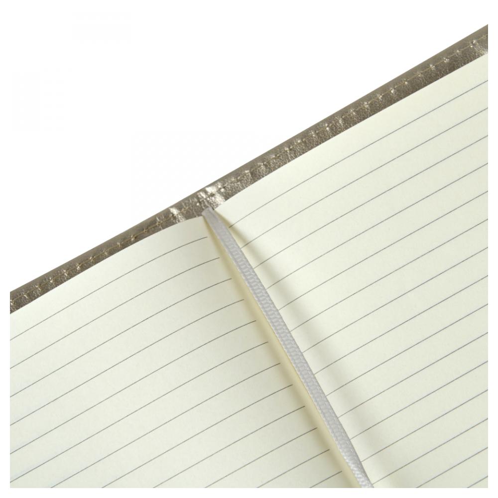 Бизнес-блокнот в твердом переплете формата А5 - удобный и стильный помощник для работы, учёбы или личных заметок. Внутренний блок прошит и состоит из 80 линованных листов цвета слоновой кости плотностью 70 г/кв.м. Закладка-ляссе позволяет открывать блокнот сразу на нужной странице.