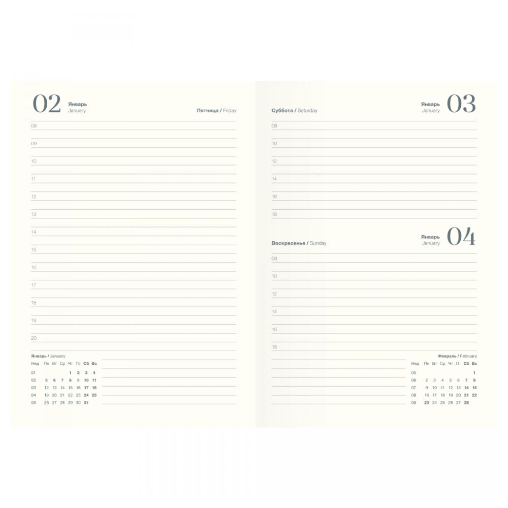 Обложка - мягкая, фактурная искусственная кожа с печатью по кожзаму Цвет - листва Блок - датированный, 352 стр. Бумага: слоновая кость, прямые уголки, 70 г/м2 Прямые уголки Кармашек 2 ляссе