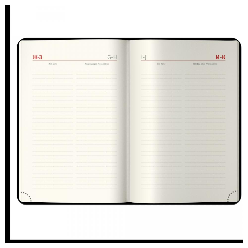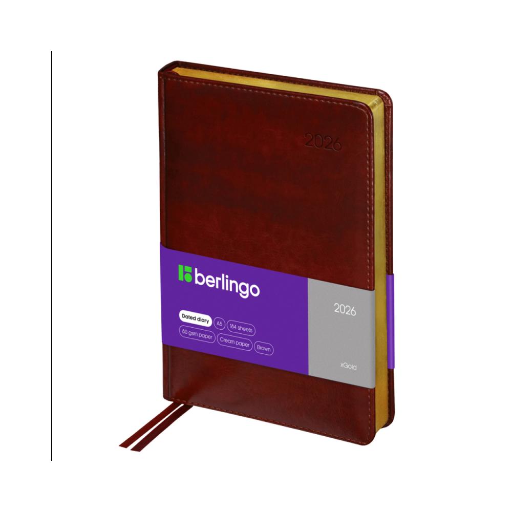 Ежедневник "xGold" — это стильное и функциональное решение для планирования на 2026 год. Изготовленный в формате A5 (150×215 мм), он имеет твёрдую обложку из глянцевой рельефной экокожи с поролоновой прослойкой, обеспечивающей дополнительный комфорт и защиту. Внутренний блок включает 184 листа кремовой бумаги повышенной плотности с печатью в две краски, скруглёнными и перфорированными уголками, а также двумя закладками-ляссе. Золотой фольгированный срез придаёт изделию элегантный вид. Ежедневник дополнен справочным материалом, отрывными заметками, бланками-извещениями о ДТП и комплектом из трёх наборов стикеров, что делает его особенно удобным для повседневного использования.