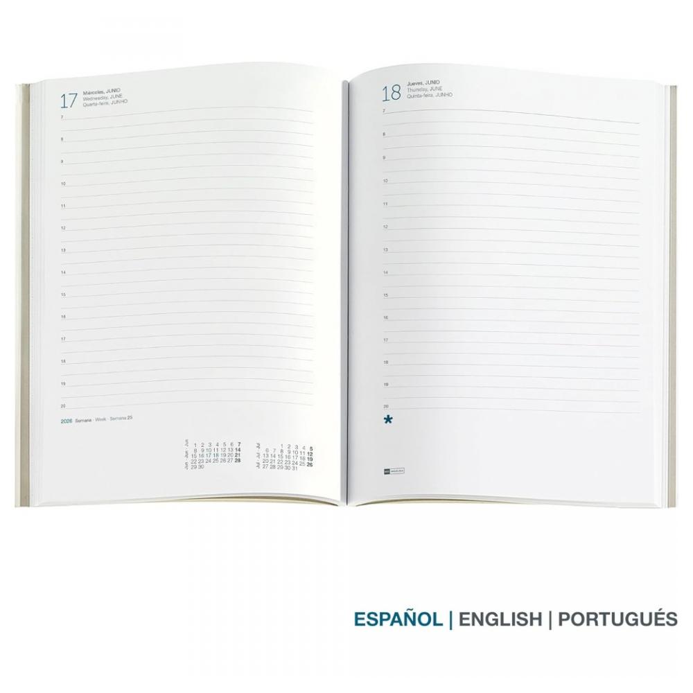 Начните год с ежедневником Miquelrius, который будет сопровождать вас в любое время. Формат «День за страницей» с января по декабрь 2026 года, размер Plus 155 x 213 мм (чуть больше A5), предлагает достаточно места для ваших ежедневных планов. Сертифицированная FSC бумага цвета слоновой кости плотностью 80 г/м² обеспечивает комфортное и чистое письмо. Прошитый переплет с матовой ламинированной твердой обложкой обеспечивает прочность и стиль, а внутренний карман, петля для ручки, эластичная застежка и лента для маркера добавляют практичности. Ежемесячный ежедневник доступен на испанском, английском и португальском языках, содержит значки и полезную информацию, например, о национальных и португальских праздниках. Идеально подходит для тех, кто хочет записывать каждую деталь и аккуратно организовывать свой день.
