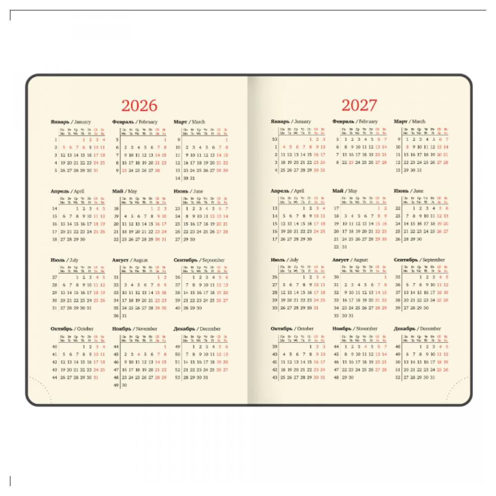 Ежедневник BRAUBERG "Accent" — это идеальный выбор для тех, кто ценит чёткое планирование и стремится к организованности в каждом дне. Его элегантный дизайн и продуманная структура делают его не просто инструментом для записи, а настоящим спутником в деловой жизни. Датированный формат помогает систематизировать задачи и встречи, превращая хаос в порядок, а импровизацию — в стратегию. Внутренний блок состоит из 168 листов нежной кремовой бумаги плотностью 70 г/м², обеспечивающей комфорт при письме. Перфорированные уголки страниц позволяют легко отслеживать текущую дату, а компактный формат A5 (138×213 мм) делает ежедневник удобным как для работы в офисе, так и для использования в дороге. Он легко помещается в сумку или портфель, оставаясь при этом достаточно вместительным для всех ваших записей. Твёрдая обложка, стилизованная под текстурную кожу, придаёт изделию солидный и стильный вид. Контрастная нашивка добавляет изюминку, а возможность горячего тиснения делает ежедневник подходящим для персонализации. Практичные детали — закладка-ляссе, держатель для ручки и справочные материалы — обеспечивают дополнительный комфорт. В завершение — четыре свободные страницы для заметок, идей и важных мыслей, которые всегда будут под рукой.