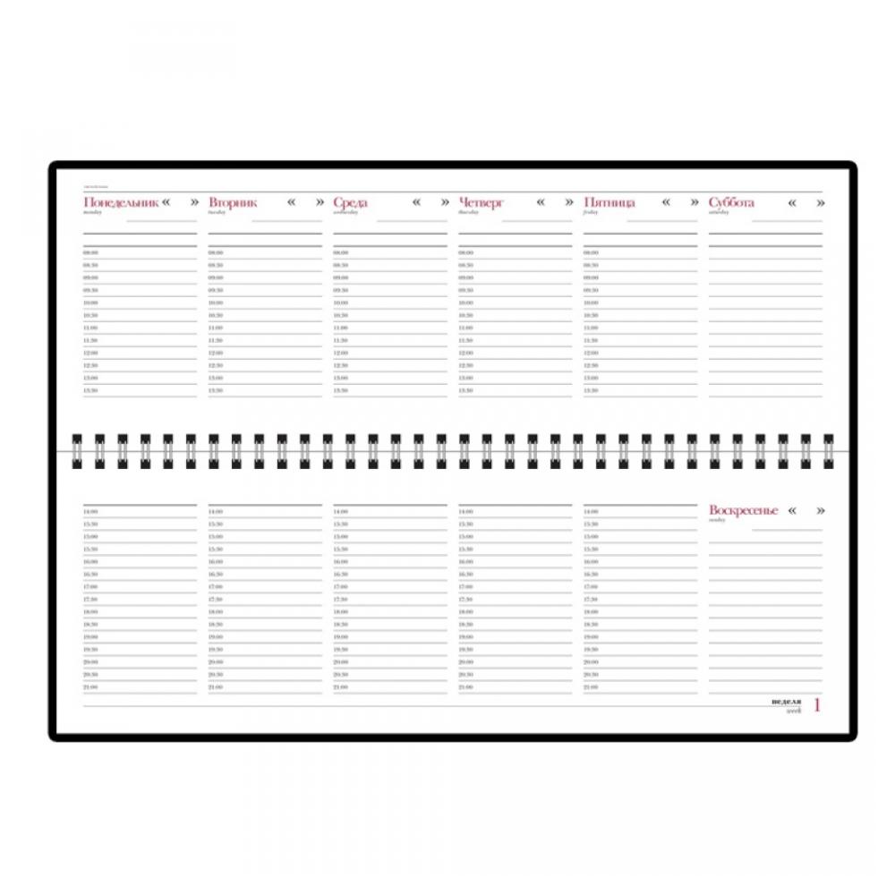 Недатированный планинг размером 305*130 мм состоит из 128 страниц с креплением на металлическом гребне. Используется высококачественная белая бумага плотностью 70 г/км. Полезная справочная информация на 14 страницах пригодится в бизнесе и повседневной жизни (телефонные коды России и мира, праздники, единицы измерения, таблицы размеров, часовых поясов и т.д.)