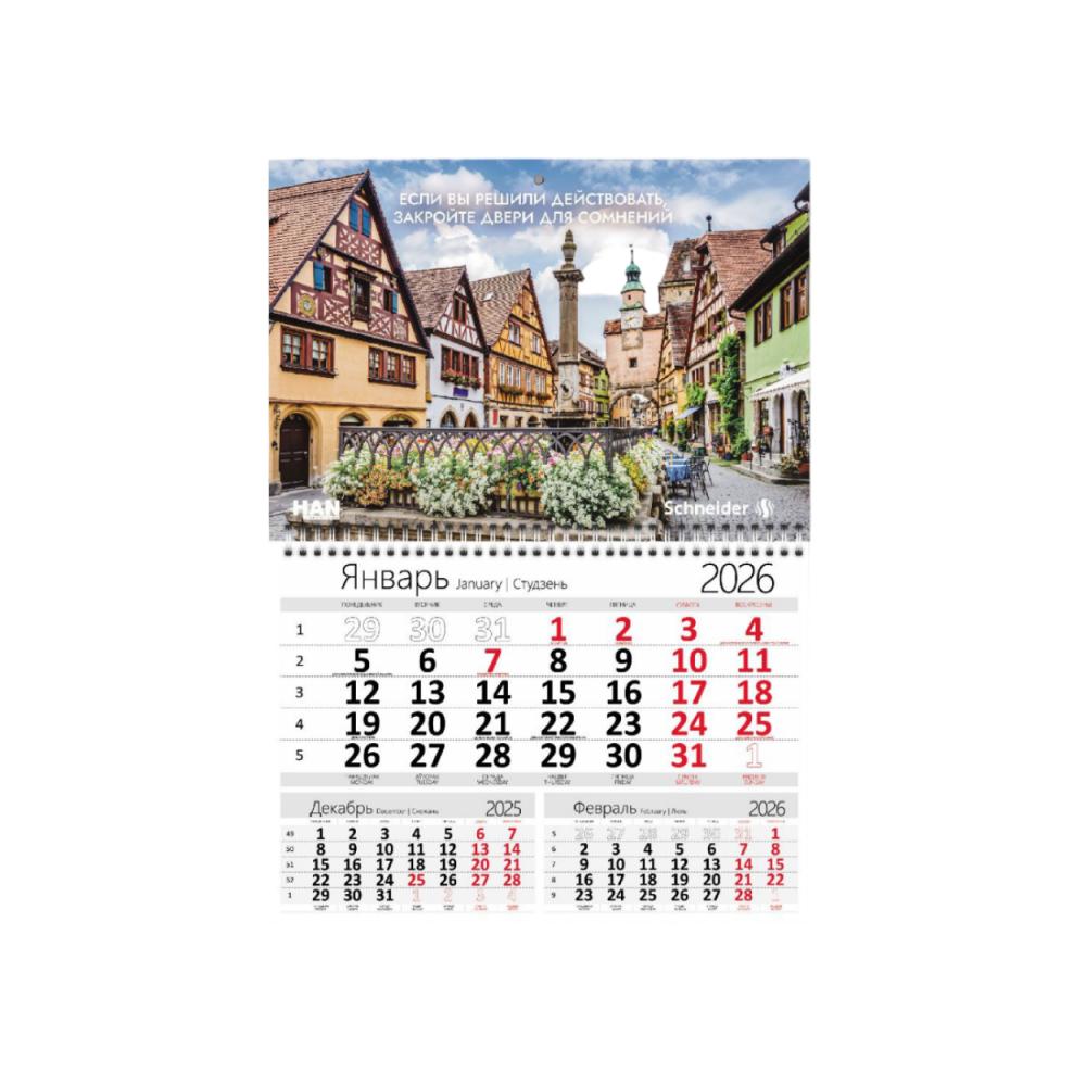 Календарь настен., А4 2026 "Han" квартальный 3 в 1