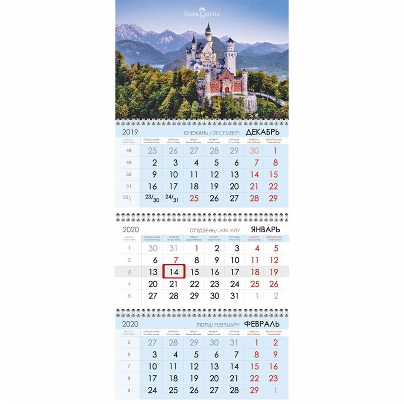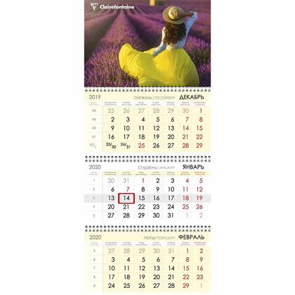 Настенный квартальный календарь на 2020 год на 3-х спиралях, формат А4. Размер календаря в развернутом виде составляет 680*297 мм.