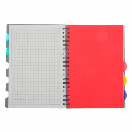 Тетради с пластиковой обложкой и разделителями - удобный инструмент для деловых людей, которым нужно логически разделить записи, и студентов, которым хочется поместить весь семестр в одной тетради. Пять цветных пластиковых разделителей помогут быстро ориентироваться в текстах, а пальчиковые вырубки на обложке можно пометить и тогда будет ясно, в каком блоке нужно искать нужную информацию.