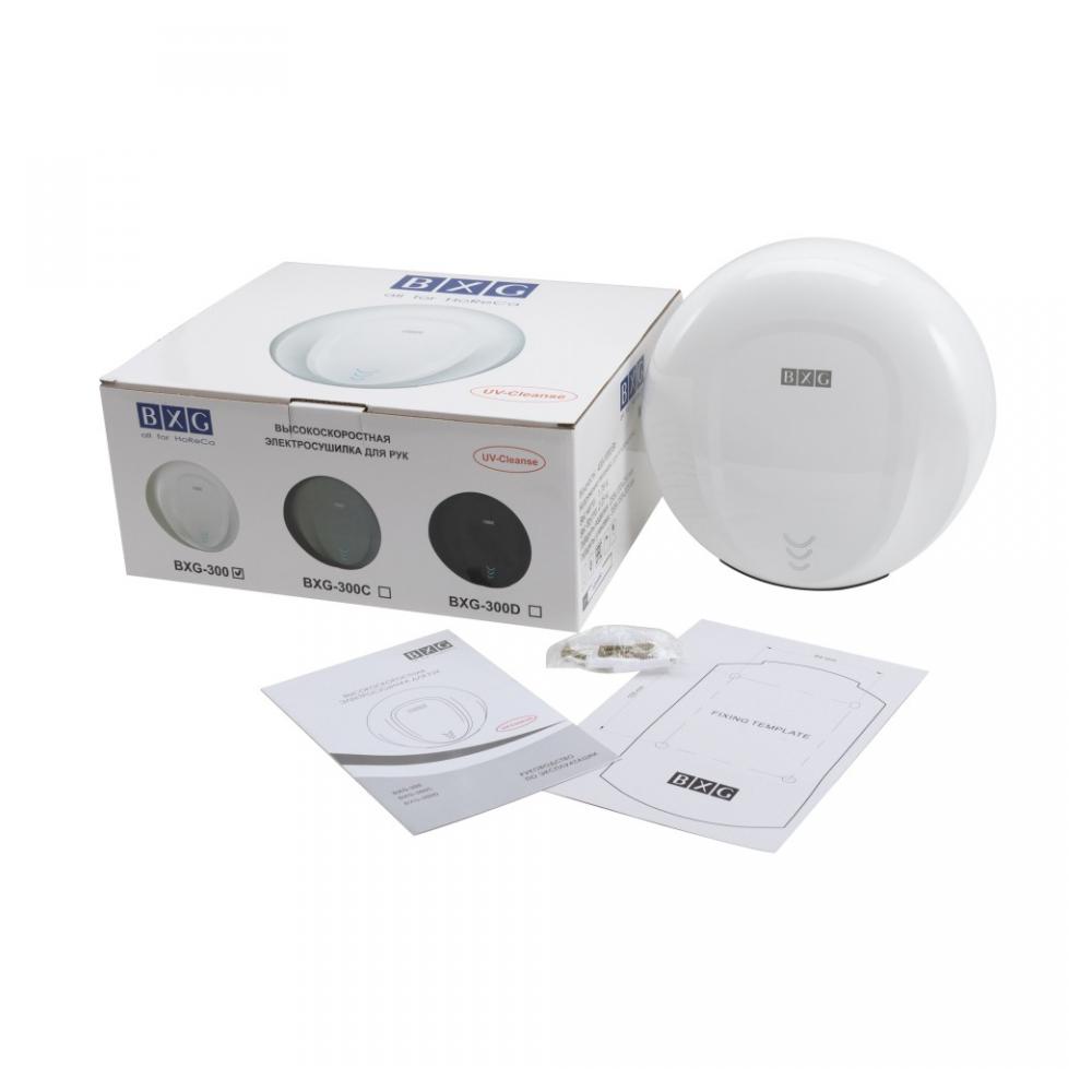 BXG-300 – Высокоскоростная электросушилка для рук нового поколения с функцией Ультрафиолетового обеззараживания. Сушилка выполнена из высокопрочного пластика ABS в благородном белом цвете с глянцевым покрытием. Гигиеничность: Внедрена передовая система очистки подаваемого воздуха, включая систему обеззараживания воздуха Ultraviolet Cleanse: Глубокая очистка воздуха – встроенный НЕРА-фильтр задерживает около 99% бактерий, вирусов, аллергенов, а так же мелкодисперсные частицы пыли из воздуха туалетной комнаты; Ultraviolet Cleanse (UV-Cleanse) – обеззараживание подаваемого воздуха за счет Ультрафиолетовой стерилизации – в результате облучения происходит инактивация 99% бактерий и вирусов. *Излучение от УФ светодиодов составляет 395-405 нм., что абсолютно безопасно для человека, но его достаточно для инактивации микроорганизмов (бактерий, вирусов, микробов), находящихся в воздухе туалетной комнаты.* Производительность: Установлен инновационный двигатель, оснащенный передовыми технологиями, обеспечивающими беспрецедентную скорость воздушного потока – 85м/сек. Это позволяет высушить руки за минимально возможное время – 7-10 секунд. ECO AIR System (EAS) – инновационная система, которая определяет температуру воздуха в помещении и автоматически регулирует температуру подаваемого на руки воздуха, значительно оптимизируя при этом эксплутационные расходы. Безопасность: BXG-300 обладает высоким классом пыле/влагозащиты – IP23: исключено попадание влаги и крупнодисперсной пыли внутрь устройства со всех сторон и исключена возможность короткого замыкания или удара электрическим током при правильной эксплуатации. Благодаря ИК-датчикам и технологии микропроцессорного управления осуществляется независимый контроль, который предотвращает слишком долгое использование сушилки или использование не по назначению. Прибор оснащён устройством автоматического отключения на случай перегрева, короткого замыкания или скачков напряжения в электросети. Экологичность: Сушилка изготовлена из высококачественных материалов, которые полностью безопасны и нетоксичны. Невысокий уровень потребляемой мощности + EAS система + высокая скорость сушки рук – все это значительно экономит электроэнергию. Элегантность: Дизайн сушилки выполнен в элегантном овальном стиле и впишется в любой интерьер санитарной комнаты. Воздуховодные отверстия размещены внизу по корпусу, а форсунки направляют воздух под специальным углом, направляя потоки воздуха от стены на руки, создавая комфортную сушку рук. Сушилка оснащена световыми LED-индикатором не передней крышке сушилки, обеспечивающим визуальную индикацию работы. Зеленый индикатор – сушилка включена. При начале работы сушилки загорается красный индикатор. Надежность: Высокая степень защиты + инновационные технологии говорят о высокой степени надежности, что подтверждается Гарантией качества и производительности в 24 месяца. Характеристики: Напряжение питания: 220-240В±5% (50-60 Гц); Мощность: 400 Вт – двигателя, 1000 Вт - номинальная; Степень влагозащиты: IP23; Максимальная скорость воздушного потока: 85 м/с; Температурный режим: ECO AIR System; Количество скоростей воздушного потока: 1; Защита от перегрузки: да; Защита от перегрева: да; Механизм включения: автоматический; Материал корпуса: ABS-пластик; Цвет корпуса: белый; Покрытие поверхности: глянец; Уровень 