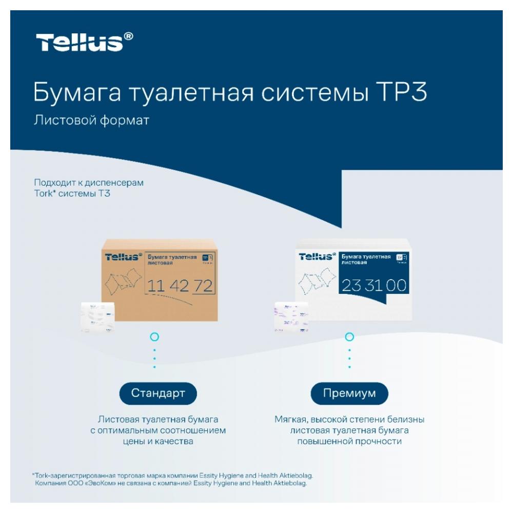 Однослойная листовая туалетная бумага Tellus категории качества Стандарт подходит для туалетных комнат с низкой и средней проходимостью. Обладает оптимальным соотношением цены и качества. Подходит для использования в диспенсерах Tork системы T3. Полистовой отбор обеспечивает гигиеничность и позволяет контролировать расход. Система: ТP3 – Листовая туалетная бумага. Характеристики: Количество листов: 250. Слойность: 1. Состав: переработанное сырье. Длина сложенного листа: 11 см. Ширина сложенного листа: 11,5 см. Длина листа: 11 см. Ширина листа: 23 см. Цвет: серый. С данным товаром покупают: Диспенсер TORK д/туалетной бумаги листовой пластиковый, белый, T3 (арт. 994965, 986753) Диспенсер TORK д/туалетной бумаги листовой пластиковый, черный, T3 (арт. 9005135) Условия и сроки хранения Хранить в закрытых помещениях, защищенных от атмосферных осадков и почвенной влаги, на расстоянии не менее 1 м от отопительных устройств. Срок годности не ограничен.