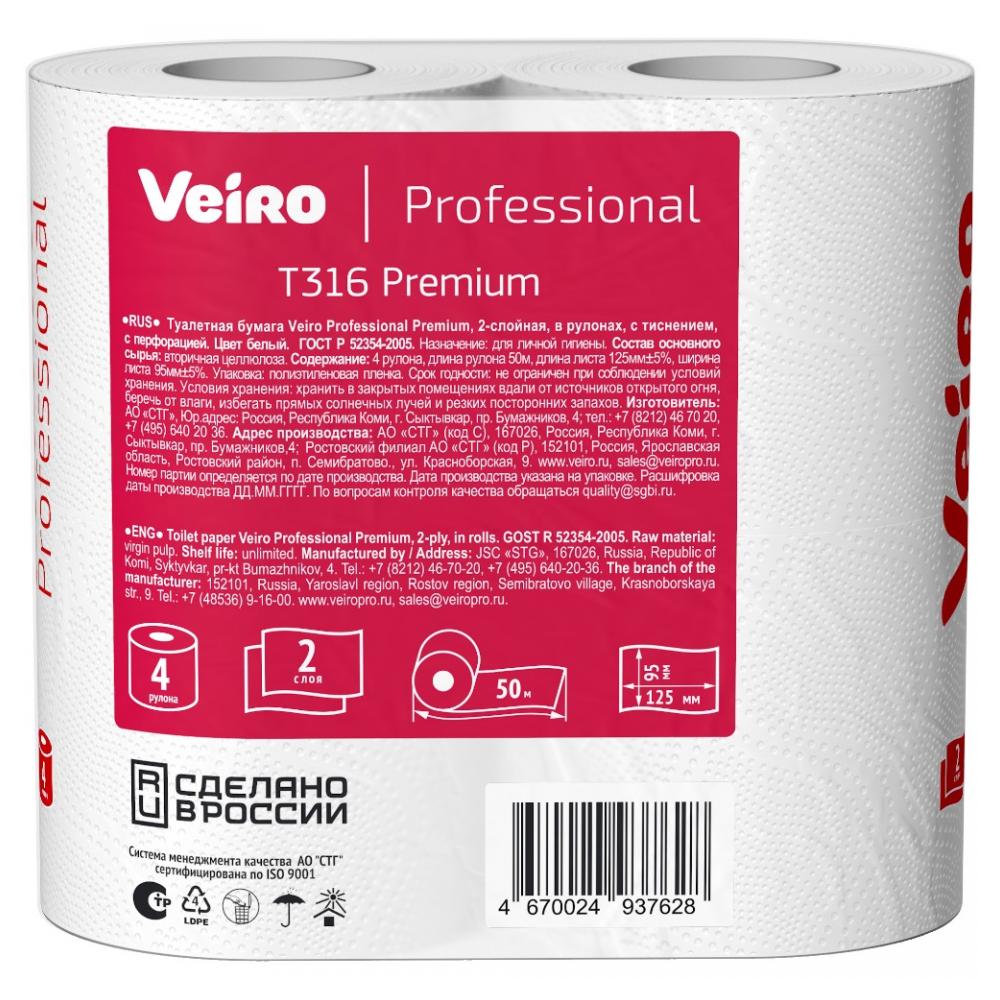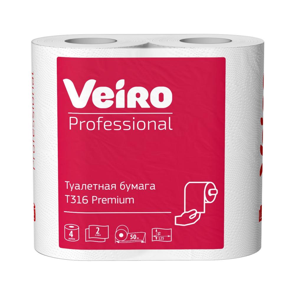 Бумага туалетная Veiro Professional Premium в стандартных рулонах, 4 рул, 50м, 2 слоя
