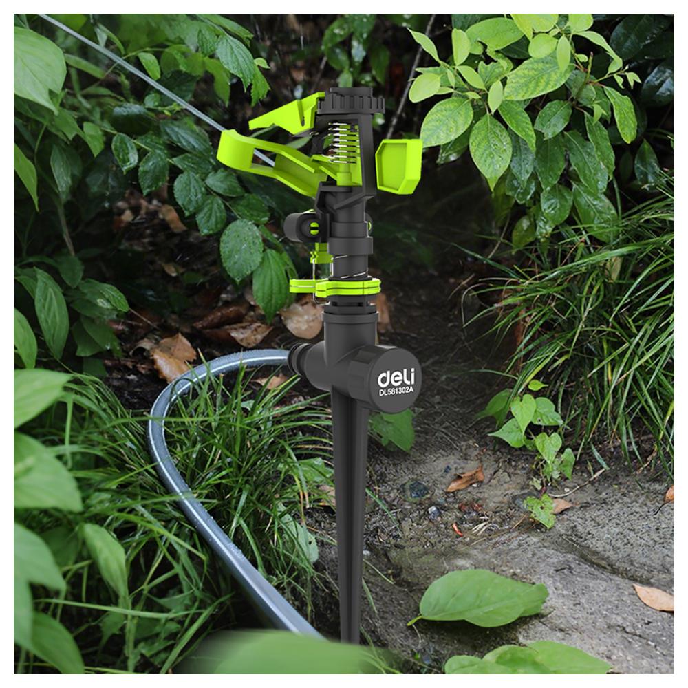 Этот импульсный распылитель Deli EDL581302A — интеллектуальный ороситель для вашего сада, созданный для равномерного и бережного полива. Благодаря импульсному механизму и пластиковой пике он мягко распределяет воду по заданному радиусу, имитируя естественный дождь без резких потоков, способных повредить нежные растения.