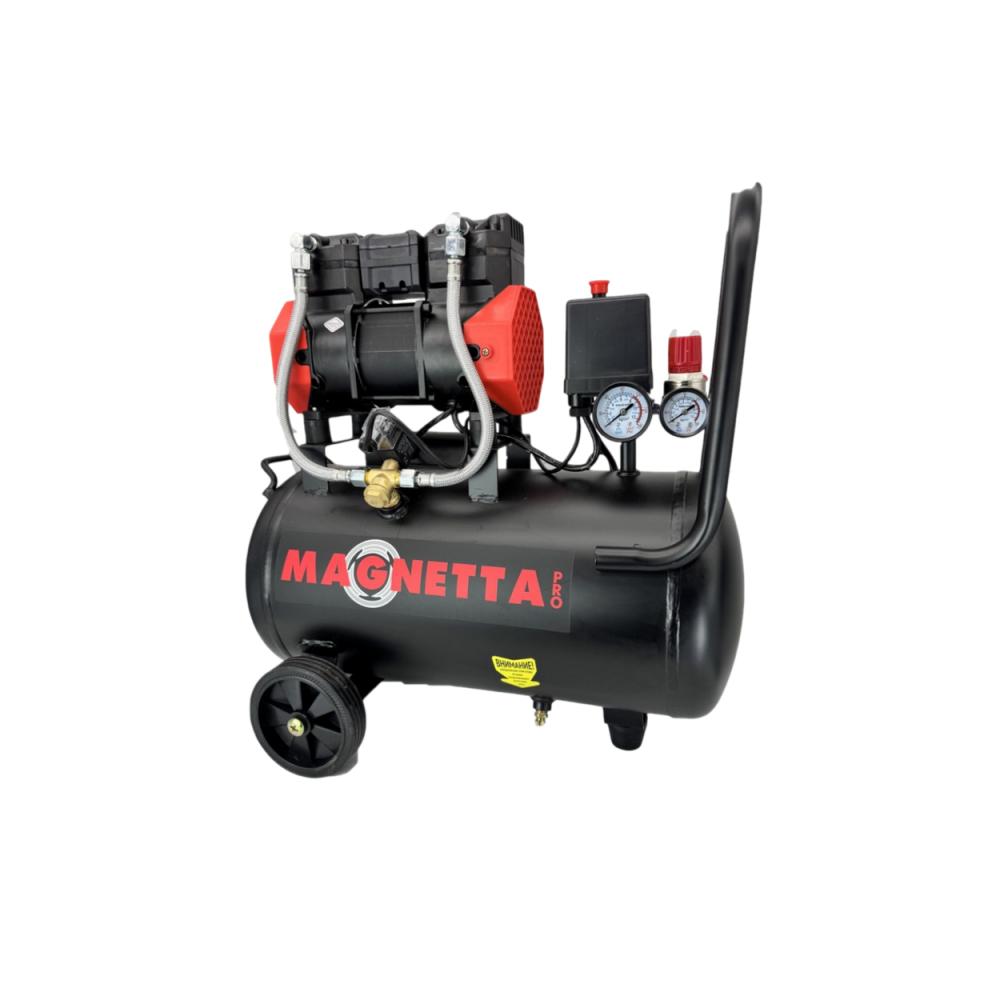 Компрессор воздушный безмасляный Magnetta BW1100-24 — это компактное и надёжное решение для эффективной работы с пневматическим оборудованием в домашних условиях, мастерских и небольших производственных помещениях. Благодаря безмасляной технологии, он не требует регулярного обслуживания, обеспечивает чистый воздух и идеально подходит для задач, где важна чистота среды — например, при покраске или работе с чувствительными материалами. Модель оснащена мощным двигателем 1100 Вт, который обеспечивает производительность до 185 литров в минуту при максимальном давлении 8 бар. Ресивер объёмом 24 литра позволяет работать продолжительное время без частых перезапусков, а компактные габариты и вес всего 20 кг делают компрессор удобным для транспортировки и использования в выездных условиях. Технические характеристики: Тип: безмасляный поршневой компрессор Номинальная мощность: 1100 Вт Напряжение питания: 220 В Частота тока: 50 Гц Объём ресивера: 24 литра Производительность: 185 л/мин Максимальное давление: 8 бар Габариты: 570×270×570 мм Вес: 20 кг Magnetta BW1100-24 — это сочетание надёжности, мобильности и высокой производительности, которое делает его идеальным помощником для повседневных задач, требующих сжатого воздуха.