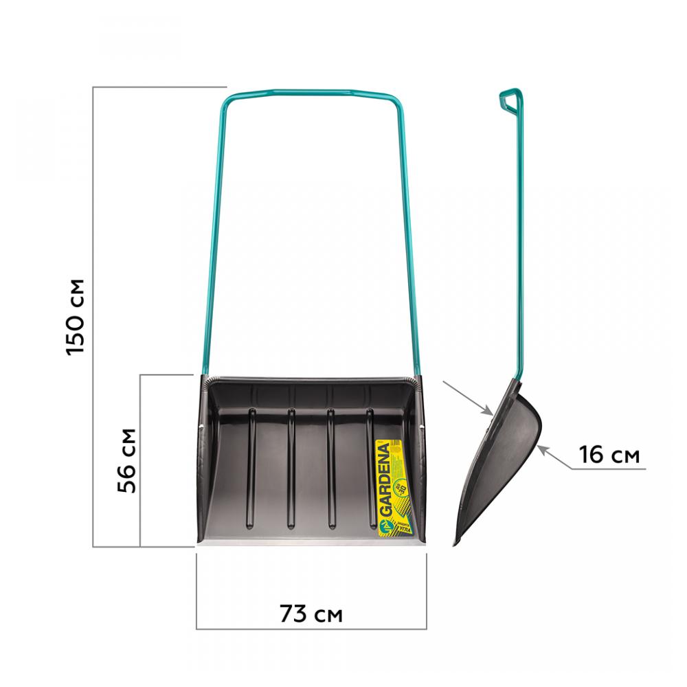 Ковш – противоударный полипропилен. Морозостойкость до -30. Алюминиевая двустороння планка полностью защищает рабочую кромку от повреждения. Закрытые углы рабочего края – уникальная конструкция предохраняет от сколов. Ковш усилен рёбрами жёсткости. Стальная рукоятка с оптимальным углом наклона и формой опоры позволяет удерживать спину в естественном положении. Работа без боли в спине, без лишнего усилия. Диаметр трубы 22 мм. Двойное защитное покрытие. Глубина - 16 см Высота ковша - 56 см