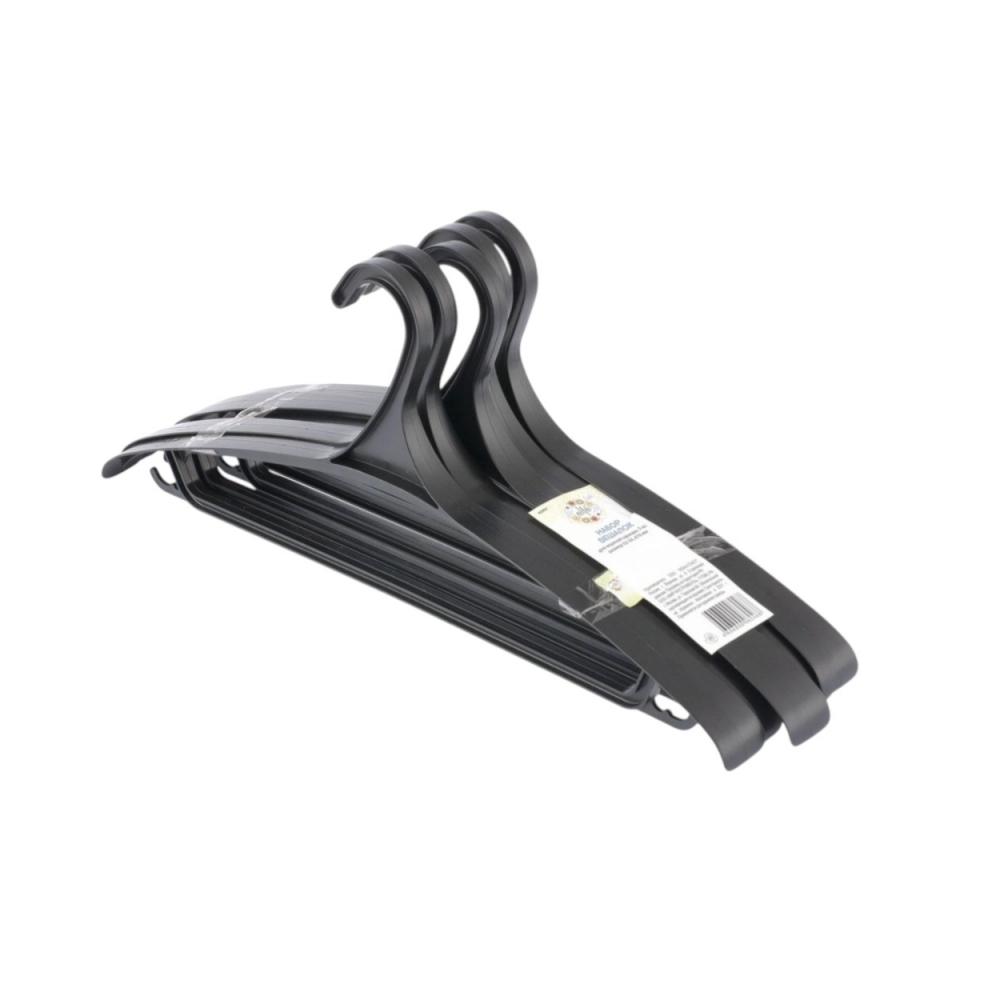 Набор универсальных пластиковых вешалок-плечиков Elfe для верхней одежды с высокой степенью прочности и надежности. Вешалки из данного набора выдержат не только костюм, но и пальто, и шубу. Идеально подойдут для применения как в гардеробных общего пользования, так и для дома, дачи. Характеристики: Материал: полипропилен; Цвет: черный; Размер одежды: 52-54; Ширина: 47 см. Поворотный крючок: нет; Перекладина: есть. Условия и сроки хранения: Хранить при температуре не выше +35°С. Защищать от действия прямых солнечных лучей. Срок годности не ограничен при соблюдении условий хранения.