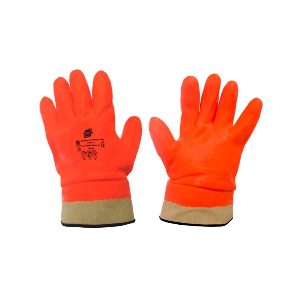 Arcticus 16020 STW - перчатки нефтеморозостойкие (до -50°C) с зимней подкладкой, полностью покрытые морозостойким ПВХ сигнального оранжевого цвета. Манжет - жесткая крага из парусины. Рекомендуется применять с утепляющими ПШ-вкладышами. Характеристики: Защита от нефтепродуктов; Защита от механических воздействий; Нефтеморозостойкие (до -50°C). Основа: х/б трикотаж. Материал покрытия: морозостойкое ПВХ покрытие с шероховатой поверхностью. Подкладка: пенополиуретановая изоляция, ворсистый трикотаж из 100% хлопка типа «джерси» с пропиткой Sanitized. Длина перчаток: 265 мм. Защитные свойства: Ми (от истирания), Мп (от проколов и порезов), Нс (от сырой нефти), Нм (от нефтяных масел и продуктов тяжелых фракций), Нл (от продуктов легких фракций), К80 (от концентрации кислот до 80% (по серной кислоте)), Щ40 (от растворов щелочей концентрации до 40% (по гидроокиси натрия)), Тн (от пониженных температур воздуха). Характеристики по EN 388 (Защита от механических воздействий): 4341 Устойчивость к истиранию – 4 Устойчивость к порезам – 3 Устойчивость к разрыву – 4 Устойчивость к проколу – 1 EN 374 – JKL EN 511 – 221 Размер: 9 (L), 10 (XL), 11 (XXL). Условия и сроки хранения: Хранить перчатки рекомендуется при температуре +5 до +25°C, в сухом месте без прямого воздействия солнечного света, ультрафиолетового излучения и озоновых источников. Не хранить перчатки в согнутом состоянии и под весовой нагрузкой. Транспортировать без штабелирования, не является опасным грузом. Срок хранения: 5 лет с даты изготовления при правильном хранении. Дата изготовления указана на этикетке и упаковке изделия.