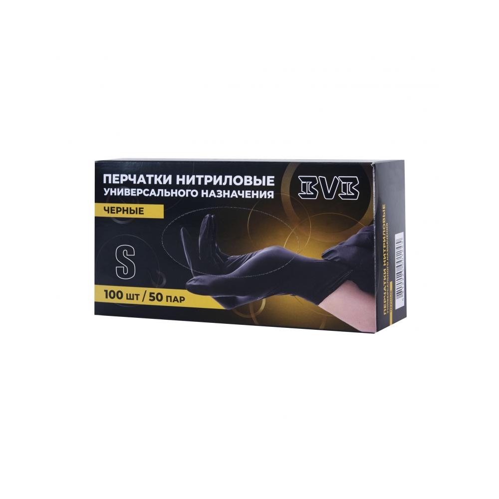 Перчатки нитриловые неопудренные одноразовые BVB, р-р S 100 шт./уп. черный