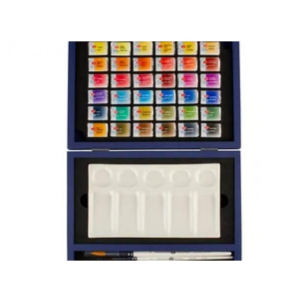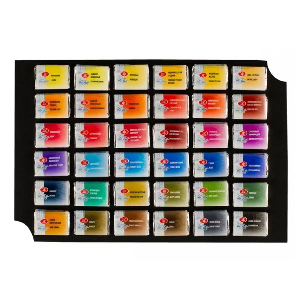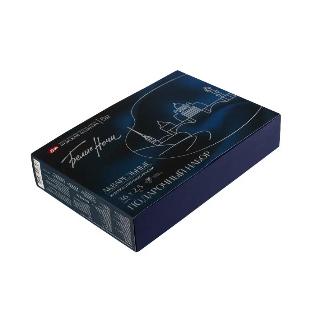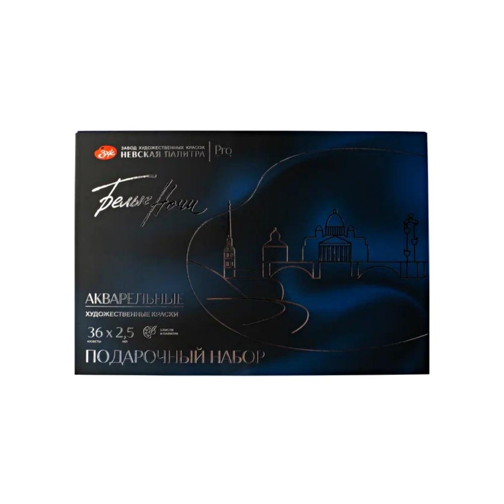Подарочный набор в деревянном пенале из натуральной березы порадует мастеров и любителей акварельной живописи высоким качеством и возможностью применения в ответственных работах. Профессиональные художественные акварельные краски «Белые ночи» представляют собой тонкодисперсные суспензии пигментов и наполнителей в связующем, в состав которого входит водный раствор растительного клея – гуммиарабика. Сбалансированная палитра набора акварели «Белые ночи» состоит из 36 цветов и позволяет решить множество творческих задач художника - акварелиста. В комплектацию набора входят: 1) Кисть синтетика, круглая короткая ручка «Невская палитра» №6 (6 мм) ; 2) Кисть синтетика, круглая короткая ручка «Невская палитра» №0 (1,2 мм); 3) Кисть белка, круглая короткая ручка «Невская палитра» №3 ; 4) Фарфоровая палитра 5) Акварельные краски в кюветах