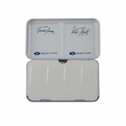 Мерцающие акварели – это сочетание традиционной красоты художественной акварели «Белые ночи» и современных технологий создания пигментов на основе натуральной слюды. Цветовая гамма набора состоит из 12 оттенков: 6 насыщенных оттенков мерцающих акварелей серии «Свечение», 6 оттенков мерцающих акварелей зимней коллекции с различным зерном мерцающих частиц. Набор комплектуется в металлическом пенале с откидной палитрой и надежными держателями кювет во время работы и транспортировки. Оснащен кольцом для удобной фиксации в руке, чтобы работать на весу. Серия мерцающих акварелей «Свечение» - хамелеоны и дуохромы в акварели, обладает богатым блеском и переливом цвета в работе на черной бумаге и глубоким насыщенным основным тоном цвета с богатым зерном мерцания в работе на белых сортах бумаги. Шесть оттенков серии «Свечение» имеют единое для оттенков набора среднее зерно мерцающих частиц. Оттенки зимней коллекции - это уникальные гранулирующиеся оттенки мерцающих акварелей, хамелеоны и дуохромы, серию акварелей дополняют оттенки «Блик» с самым крупным мерцающим зерном иридисцентных частиц. В зимней коллекции мерцающие акварели разного зерна мерцающих частиц: от тонких до самых крупных. Оттенки набора позволяют работать чистыми оттенками мерцающих цветов, наносить прозрачный слой с мерцающим эффектом поверх выполненной акварельной живописи в работе на белой бумаге. В работе на черной бумаге – оттенки набора дают возможность выбора зерна и степени блеска мерцающих красок и возможность создавать контрастные сочетаниях крупных и мелких мерцающих частиц в живописной работе.