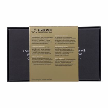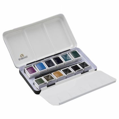 Акварельные краски «Rembrandt» на основе пигментов и натурального гуммиарабика – это всегда высокое качество и яркие насыщенные цвета. Технология производства красок неизменна с 1899 года. Акварель не токсична, быстро высыхает, не растекается по бумаге и легко смешивается. Обладая высоким уровнем светостойкости, краски не выцветают, а сохраняют свой цвет на протяжении 100 и более лет. Набор акварельных гранулирующих красок «Rembrandt» в металлическом пенале состоит из 12 кювет и складной кисти. Небольшие ячейки на крышке пенала удобно использовать в качестве палитры. Гранулирующие краски добавят работам зернистый эффект и позволят поэкспериментировать с оттенками. Такой набор пригодится как профессиональным акварелистам, так и начинающим художникам. Набор красок Rembrandt включает следующие цвета: 230, 234, 373, 410, 503, 507, 534, 539, 616, 629, 630, 682. Сам пенал может использоваться в качестве палитры.
