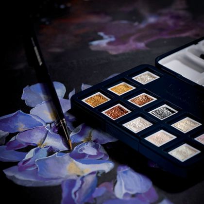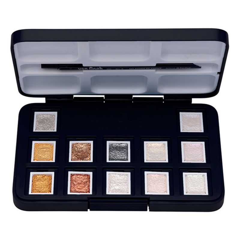 Акварель "Van Gogh" состоит только из светостойких пигментов высокой степени очистки и качественного гуммиарабика. Она прекрасно смешивается, достаточно быстро сохнет и не расплывается по бумаге, благодаря чему рисунок сохраняет четкость и отличается безупречными переходами от нежных, полупрозрачных оттенков к самым насыщенным. В набор акварельных красок входят кисть и 12 кювет по 1.3мл.