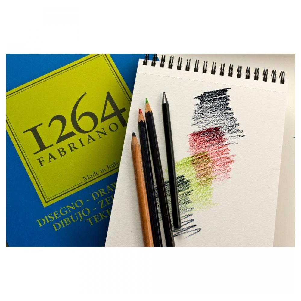 Серия Fabriano «1264» представлена альбомами для художественных работ различными видами материалов. Название серии соответствует году основания бренда. Альбом BRISTOL содержит высококачественную бумагу плотностью 200г/м2, белого цвета, с гладкой фактурой. Рекомендуются для создания подробных технических чертежей, подойдет для карандашей, угля, пастели, ручек, чернил, маркеров и акварели без сильных размывок и с использованием минимального количества воды. Для художественных работ графическими материалами.
