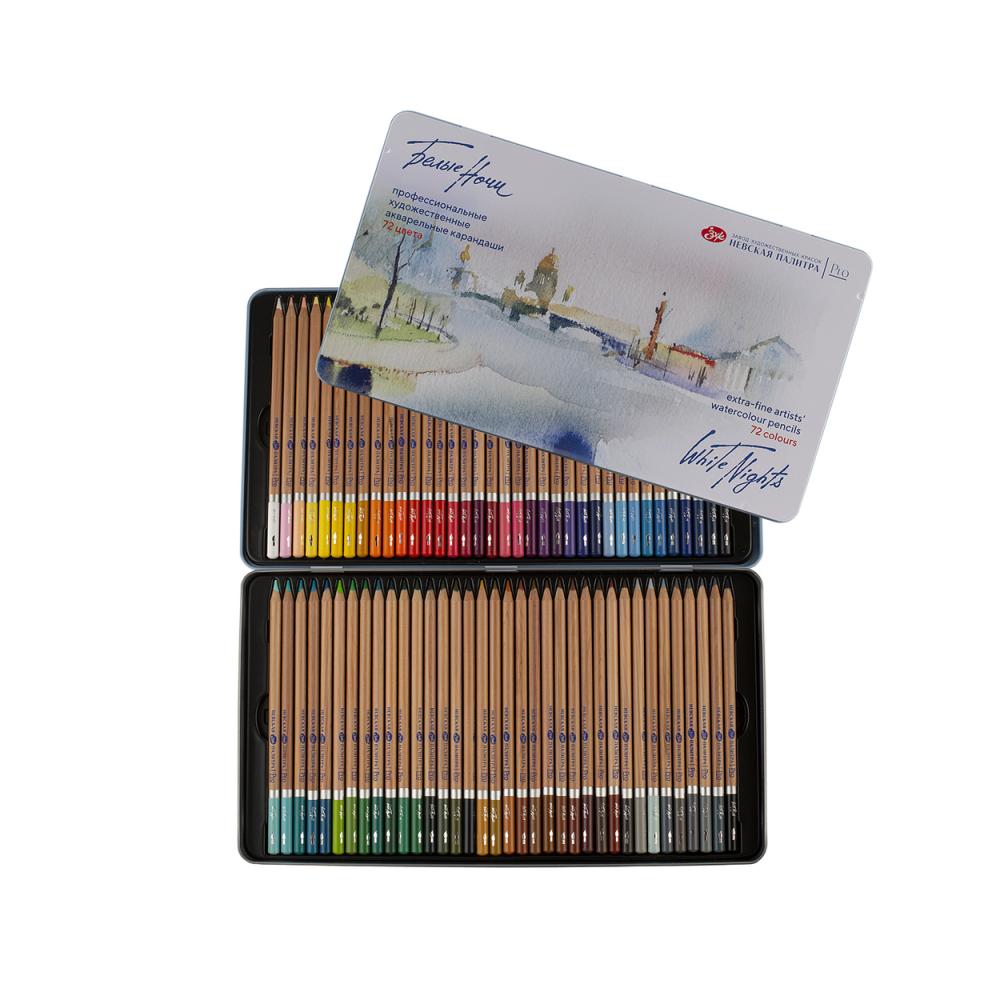 Акварельные карандаши «Белые ночи» созданы для художников, дизайнеров и иллюстраторов, объединяя достоинства цветных карандашей и акварельных красок. Они обеспечивают графическую точность и детализацию, а при смачивании водой позволяют создавать нежные акварельные работы. Инструмент подходит для смешанных техник и различных художественных эффектов. Высокая концентрация и тончайший помол пигментов обеспечивают яркие, насыщенные цвета, бархатную мягкость штриха и отличную растворимость. Смешение оттенков как в сухом, так и во влажном состоянии даёт чистые новые тона и плавные цветовые переходы.