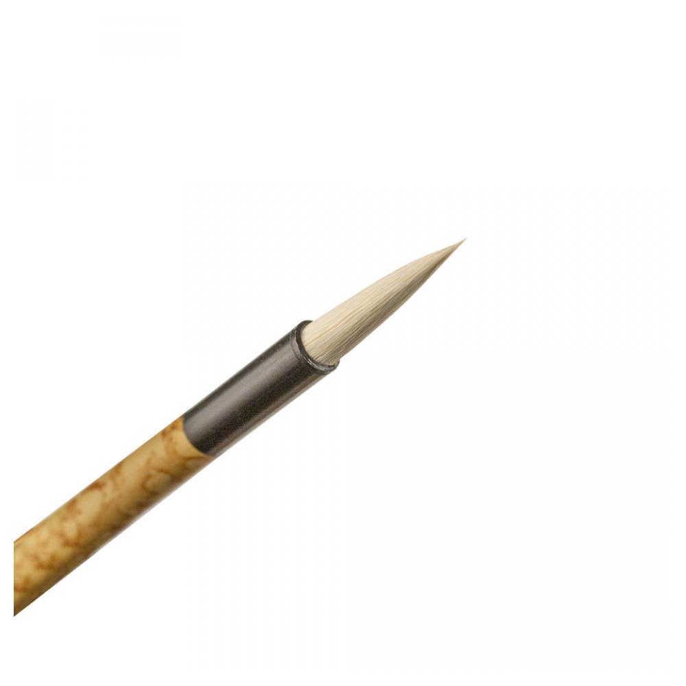 Классическая кисть для каллиграфии из смеси ворса козы и синтетики. Такое сочетание обеспечивает оптимальное соотношение мягкости и упругости. Кисть хорошо набирает и отдаёт тушь, может также использоваться для работы с красками на водной основе. Качественная сборка позволяет кисти держать острую вершинку для создания самых тонких элементов.