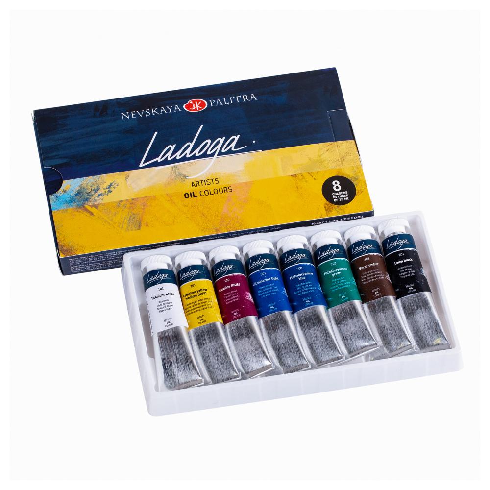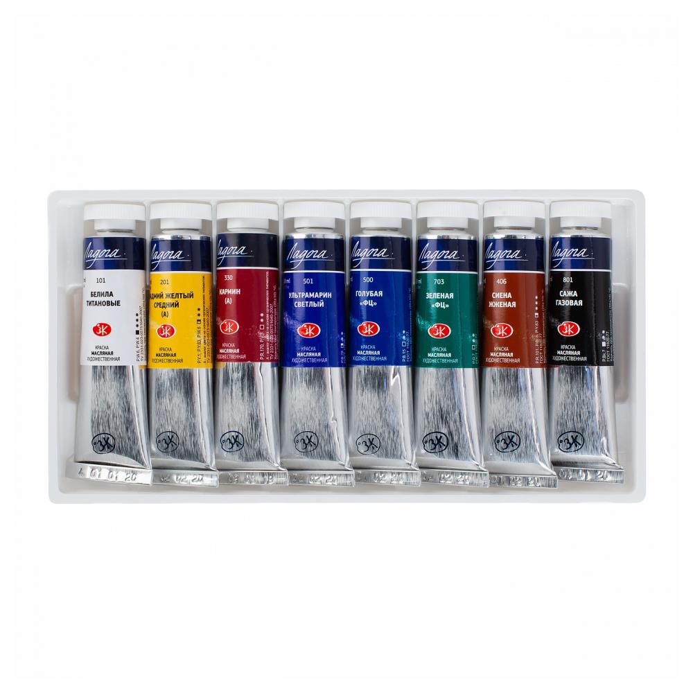 Краски масляные "Ладога" набор 8 цв., 18 мл., тубы