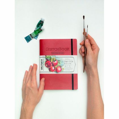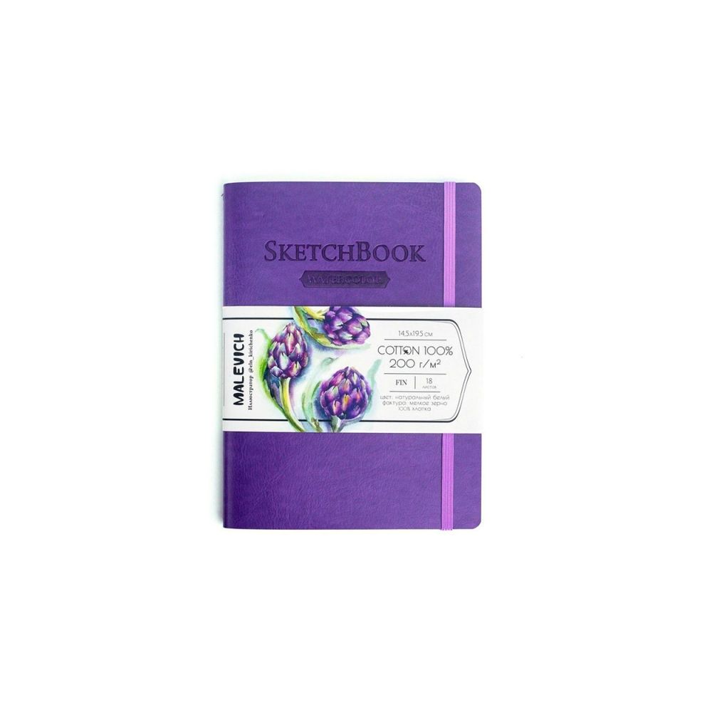 Скетчбук Малевичъ создан для акварельной живописи. Бумага хорошо смачивается и держит воду, при этом почти не деформируется, высыхает не быстро, позволяет работать по мокрому. На бумаге хорошо получается градиент и растяжка цвета. Во влажном состоянии хорошо вытирается и позволяет внести коррективы. Цвет впитывает не сильно, с учетом, что это хлопок. В твердом переплете оформлены в обложки, имитирующие кожу. Скетчбуки с профессиональной бумагой для акварели из 100% хлопка плотностью 200 г/м, мелкое зерно. Размер 14.5x19.5 см.