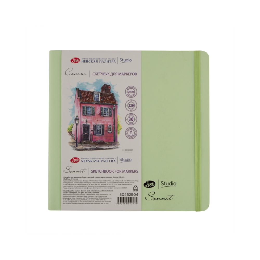 Скетчбуки для маркеров «Сонет» содержат бумагу для маркеров, пропитанную специальным составом, который позволяет работать на обоих сторонах листа. Бумага обладает плотностью 220 гр/м2 и гладкой поверхностью, идеальной для работы спиртовыми маркерами. Скетчбук может использоваться также для графических работ линерами и другими материалами или в смешанных техниках. Серия представлена скетчбуками различных форматов на сшивке в мягкой (разных цветов) и твердой обложке (в черном цвете).
