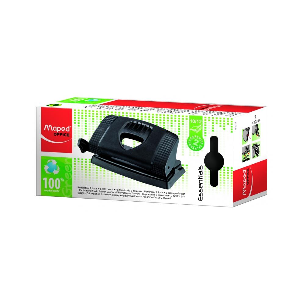 Дырокол 10/12 л. "Essentials Green" лин., черный