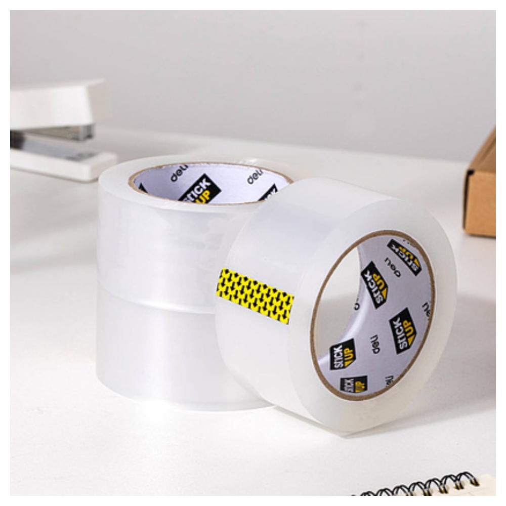 Упаковочная прозрачная клейкая лента "Deli". Удобна благодаря своему широкому размеру в 48 мм, отлично подходит для запечатывания коробок и прочей упаковки. Обладает прекрасными клейкими свойствами. Длина ленты – 91,5 метров, плотность составляет 45 микрометров. Обладает высокой степенью прозрачности, низким уровнем шума при размотке ленты.