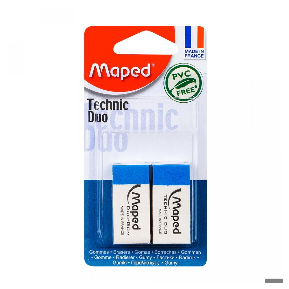 Ластик "Technic Duo" комбинир., 2 шт., белый/голубой, блистер