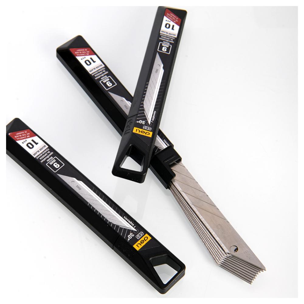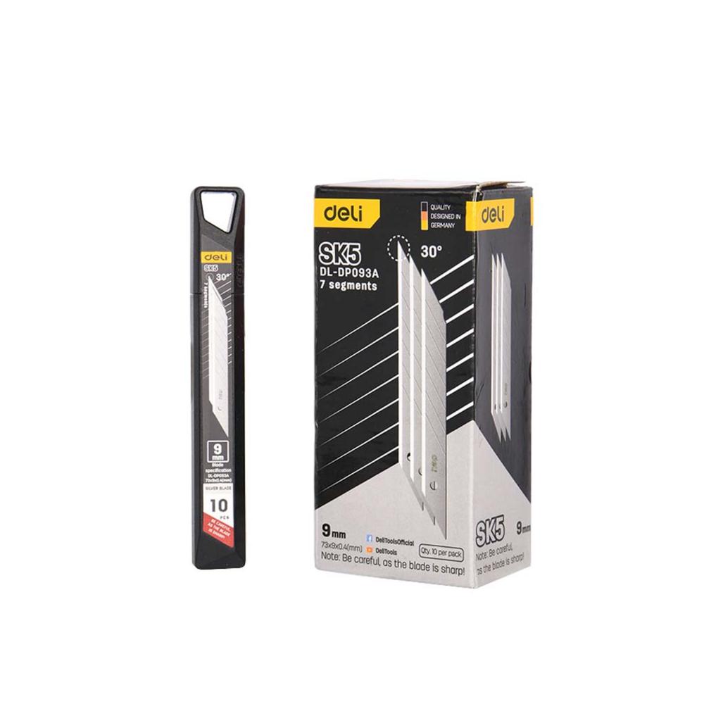 Лезвие для строительного ножа "Deli SK5" 9 мм, 10 шт. Материал: сталь SK5 10 лезвий в комплекте Ширина лезвия: 9 мм Упаковано в пластиковый блистер Высокотемпературная закалка, антикоррозийное покрытие. 7 сегментов