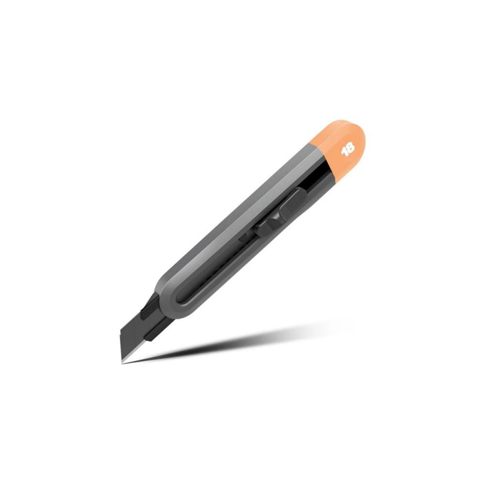 Технический строительный нож "Home Series Black" Deli HT4018 (сегментированное черное лезвие 18мм, эксклюзивный дизайн, корпус из высококачественного софттач пластика) применяется для реза бумаги, картона, линолеума и других материалов. Лезвие выполнено из качественной стали SK2, благодаря чему отличается исключительной надежностью и остротой и легко меняется при необходимости. Корпус со специальным покрытием Soft Touch обеспечивает комфортную эксплуатацию, стойкость к атмосферным явлениям и образованию сколов и трещин. Эксклюзивный дизайн - изящный, но одновременно строгий и современный - уделяет внимание каждой детали. Нож упакован в стильную картонную коробку и будет отличным подарком для любителей качественного, современного инструмента.