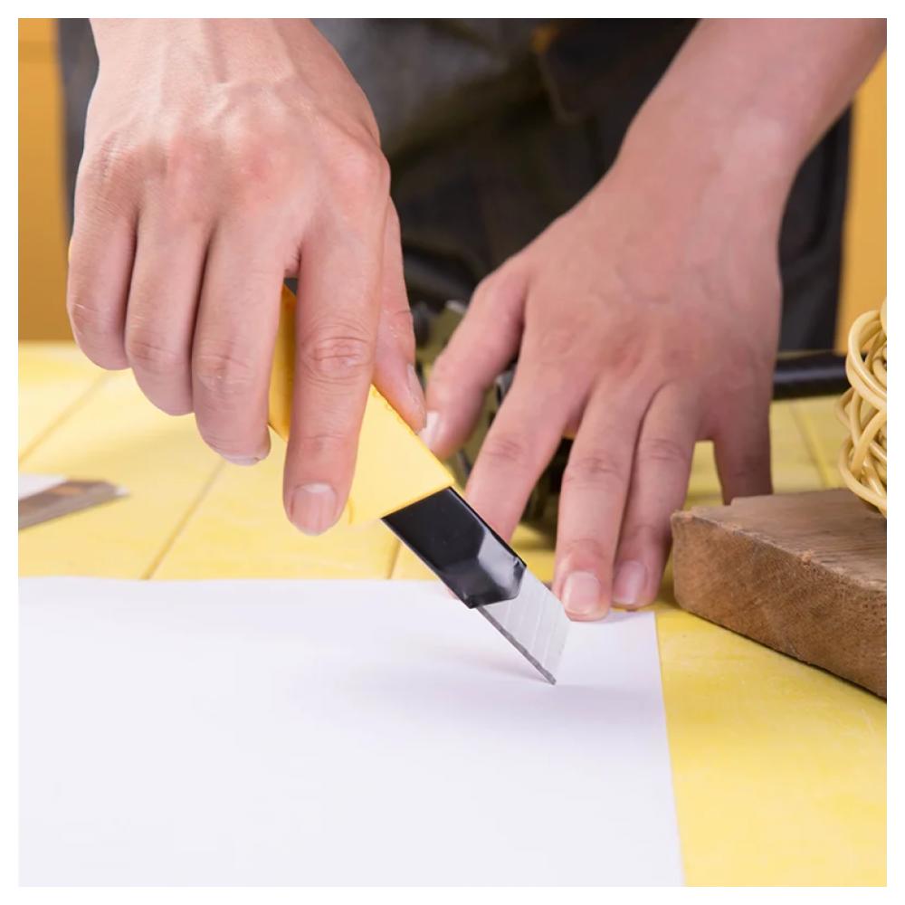 Технический нож DELI DL003 18 мм пригодится при проведении строительных, ремонтных, бытовых и прочих работ. Нож имеет двухступенчатое качественное лезвие из стали SK5, что обеспечивает высокое качество резки. Корпус из ABS пластика обладает прочностью и долговечностью. Кнопка блокировки лезвия служит для удобства работы. Технические характеристики: Материал лезвия - SK5 Выдвижное лезвие - есть Обрезиненная рукоять - нет Конструкция - выдвижной Складной - нет Габариты без упаковки - 160 x 40 мм Отделение для запасных лезвий - нет Фиксатор лезвий - защелка