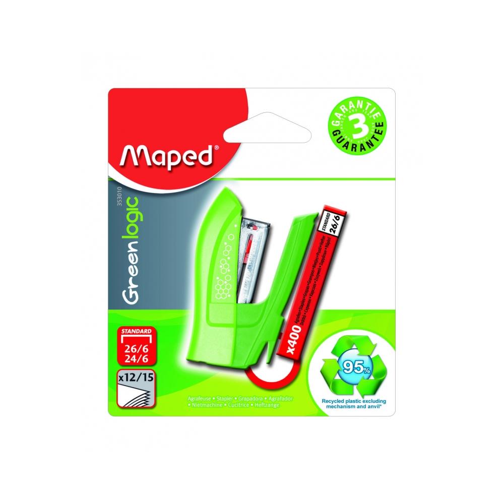Экологичный степлер Greenlogic создан на 95% из переработанного пластика. Индикатор остатка скоб всегда позволит вам следить за уровнем скоб. Возможно хранение как в вертикальном, так и в горизонтальном положениях. Дополнительное удобство гарантирует встроенный антистеплер.