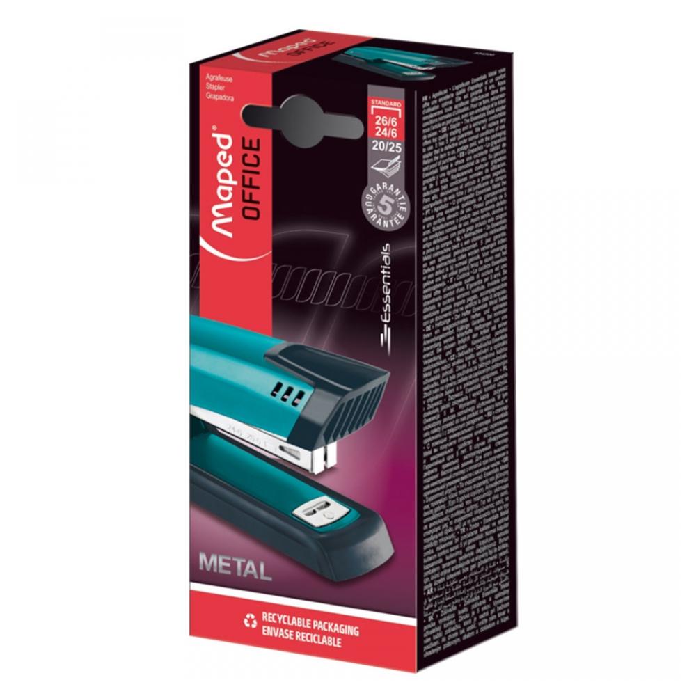 "Essentials Metal" – универсальный степлер, превосходный вариант для офиса! Скрепляет до 25 листов с помощью скобы 26/6 и до 20 листов с помощью скобы 24/6, глубина захвата – 61 мм. 100% металлический механизм и вместительный отсек для скоб. Эргономичный рычаг корпуса отличается максимальным удобством. Специальный механизм предотвращает застревание скоб. Корпус степлера раскладывается, после чего его можно использовать в качестве тэкера. Яркий и стильный дизайн степлера украсит любой офис и ваше рабочее место!