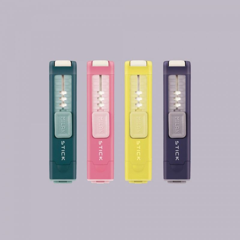 Stick - это выдвижной ластик в пластиковом держателе с точилкой. В модели предусмотрен фиксатор, препятствующий самопроизвольному возврату ластика. Ластик подается по принципу механического карандаша. Точилка имеет острое и прочное стальное лезвие, а также небольшой контейнер для стружки. Подойдет для всех видов карандашей. Предусмотрена система безопасных лезвий, которая предотвращает отсоединение лезвия от корпуса точилки. Идеально подойдет для использования в школе, университете, офисе.
