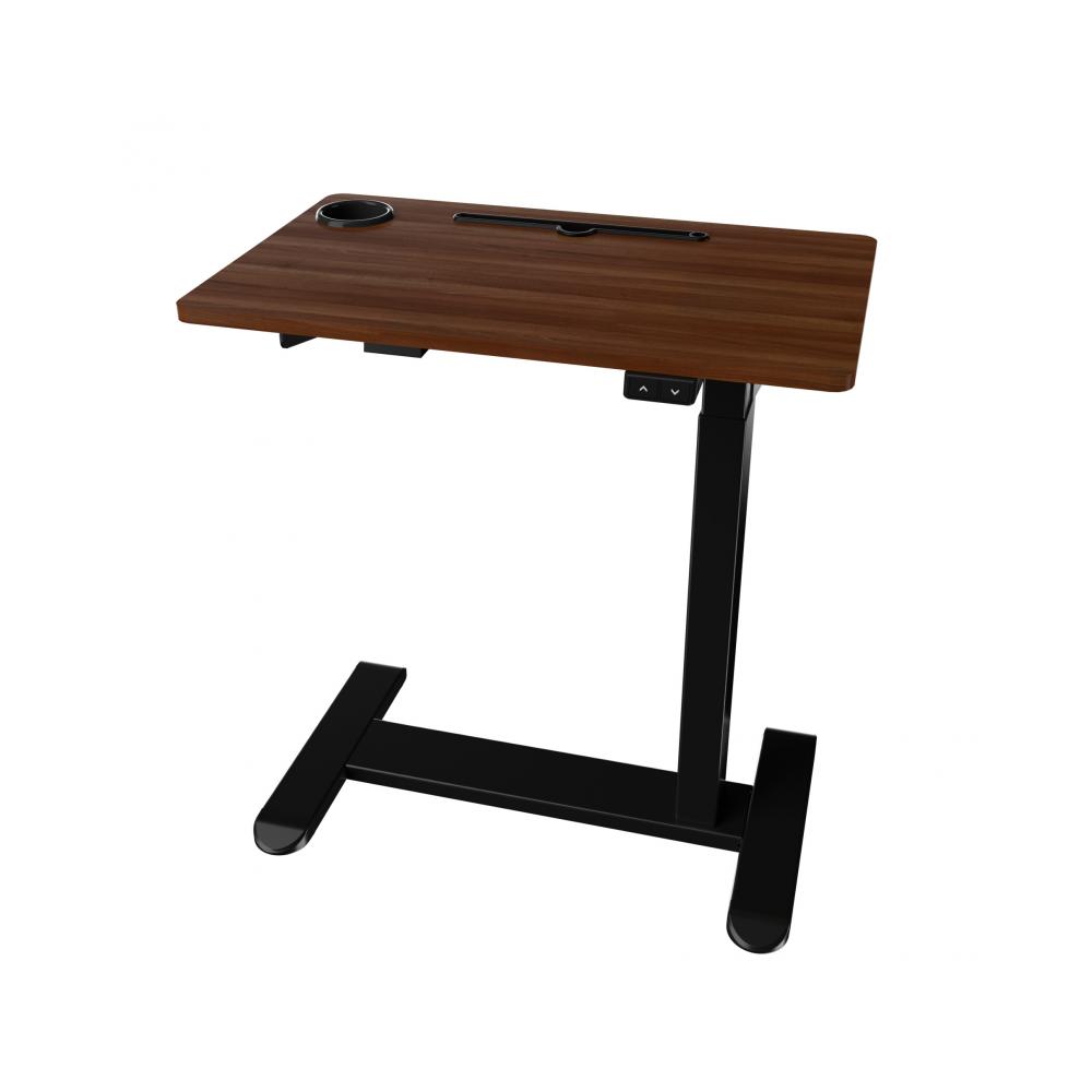 Стол подъемный с электроприводом AOKE REST WOOD– за таким столом удобно работать как сидя, так и стоя. Эти прикроватные столы подойдут тем, кто работает на кровати или диване, сидя в кресле или на балконе, где нужно эргономичное рабочее место. Такие столы повышают работоспособность, помогают сохранить здоровье и хорошую физическую форму. Стол одномоторный. Мотор установлен AOKE с расширенной гарантией. Опора двухсегментная, что позволяет опускаться столешнице на высоту 650 мм и максимально подниматься до 1100 мм. Форма опоры прямоугольная. Фиксированная рама каркаса. Размер столешницы 650*400 мм. Размер крепления верхнего кронштейна 375 мм, размер опоры каркаса у основания 645*400 мм. На опоре установлены четыре ролика-подпятника для плавного передвижения стола. Грузоподъемность каркаса 20 кг. Скорость подъема каркаса 28 мм/с, питание от сети 100-240 В, уровень шума менее 50 дБ, что соответствует норме. Дополнительные опции: Разъем USB. Гарантийный срок 5 лет. В пульте две кнопки управления вверх/вниз. Возможные цвета каркаса: черный. Столешница - темное дерево.