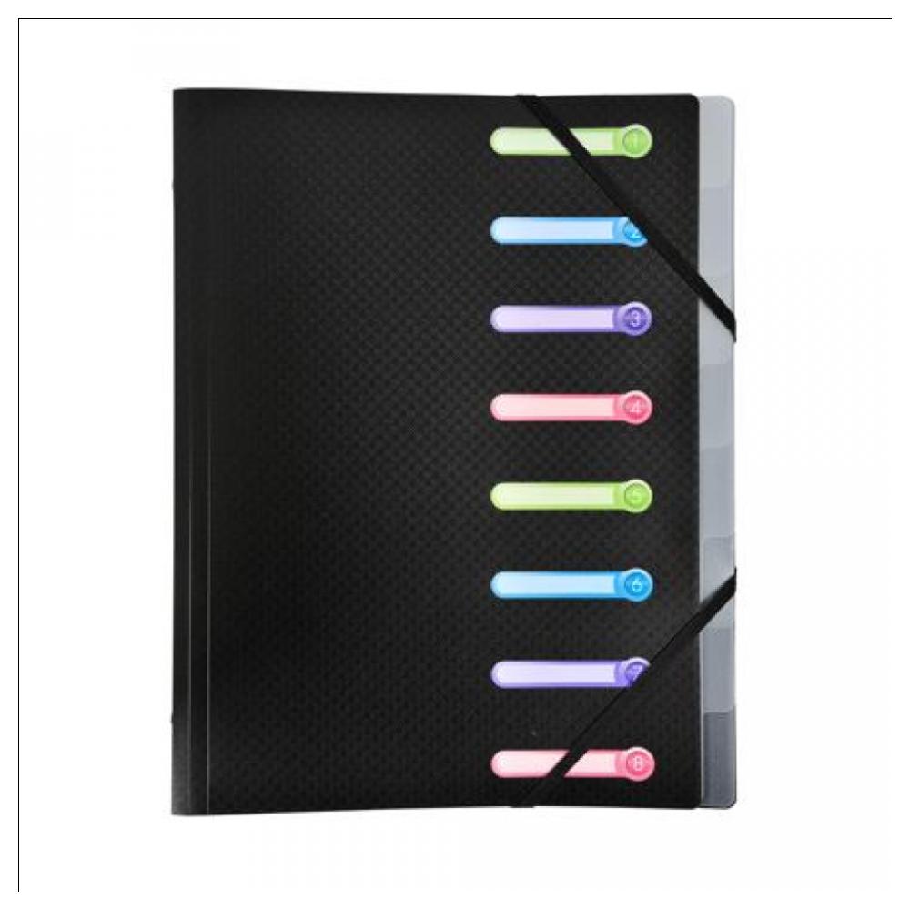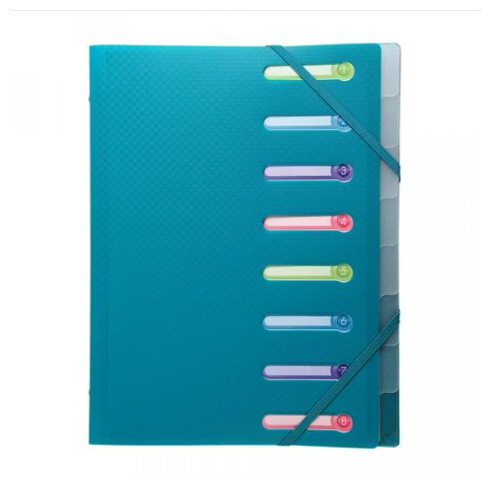 Органайзер Opak на 8 делений выполнен из прочного матового полипропилена, который не боится пятен и царапин. Это практичное решение для студентов и специалистов, позволяющее удобно хранить и переносить как перфорированные, так и обычные документы. Внутри предусмотрены прорезные окошки для настройки разделов и карман формата А4 на передней обложке. На задней обложке расположены три клапана для дополнительных бумаг, а эластичная застёжка надёжно фиксирует содержимое при транспортировке.