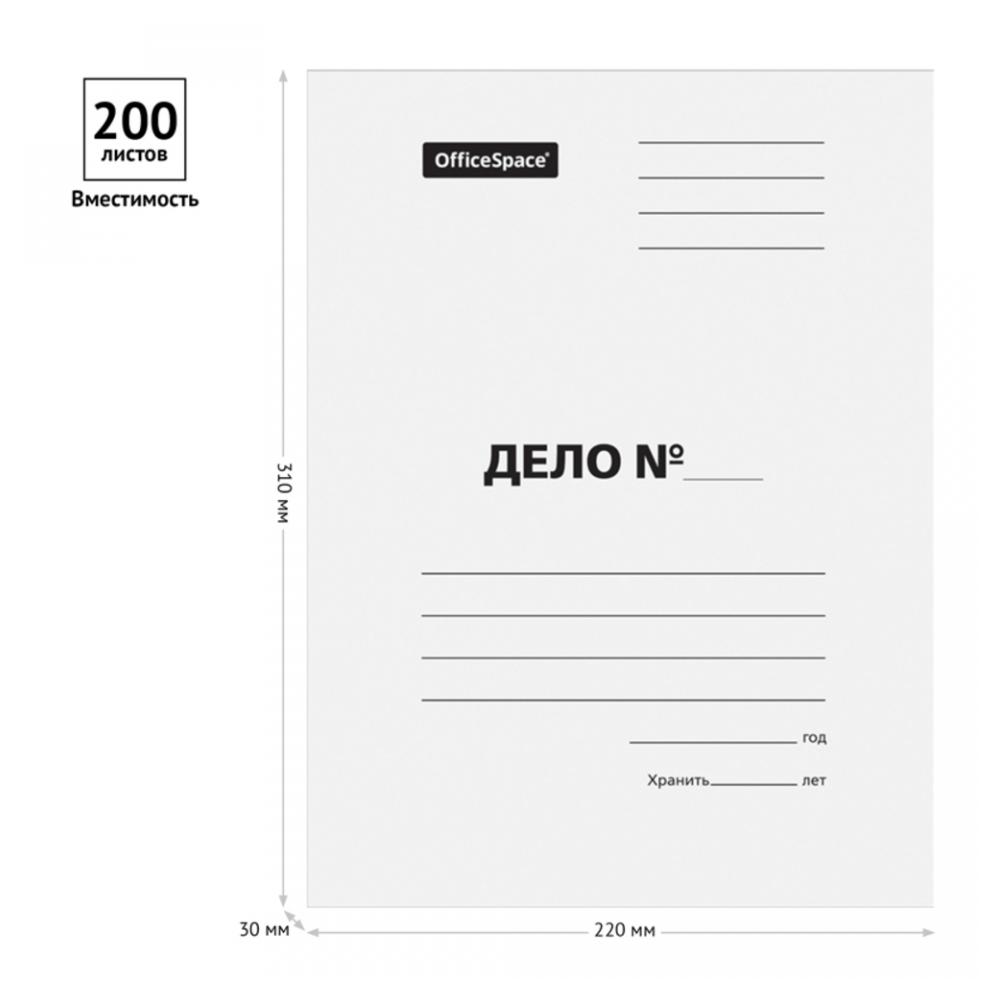 Папка-обложка OfficeSpace серии «Дело» формата А4 предназначена для хранения бумаг. Изделие размером 310*220 мм выполнено из немелованного картона белого цвета, плотностью 320 г/м2. Отсутствие скоросшивателя позволяет организовать хранение бумаг без использования дырокола. На лицевой стороне располагаются поля для надписей. Папка вмещает до 200 листов.