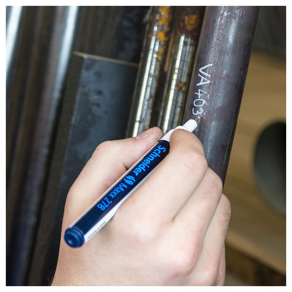 Маркер с тонким наконечником идеально подходит для маркировки и декорирования шероховатых и гладких поверхностей, например, бумаги, пластика, стекла, керамики, металла, кожи, резины и т. д. Наносимые маркировки отличаются высокой непрозрачностью, устойчивостью к стиранию практически на всех материалах, светостойкими, водостойкими и термостойкими до 300 °C свойствами.