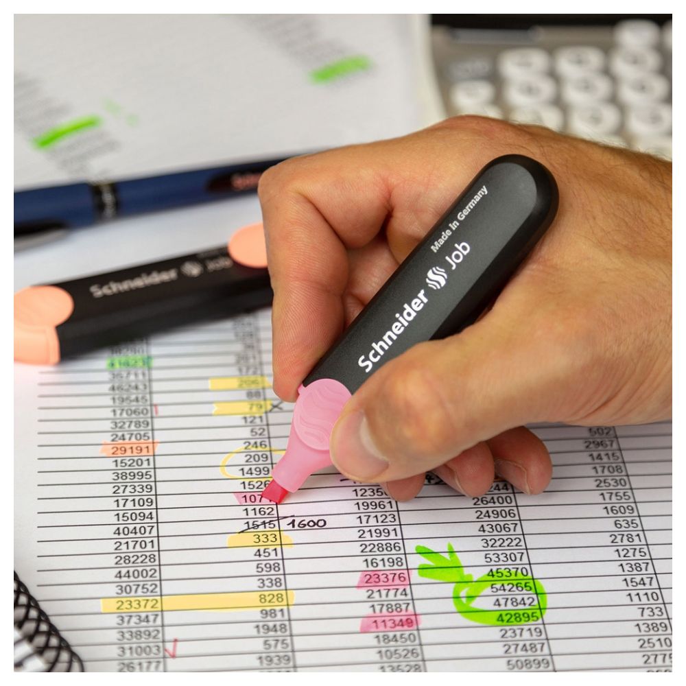 Выделитель текста. Удобный скошенный наконечник для более точного выделения. Универсальные чернила обеспечивают максимальную яркость и хорошую светостойкость на обычной, копировальной и факсимильной бумаге. Это делает маркер "Job" идеальным для школы, университета или офиса. Благодаря большому резервуару для чернил маркер может выделить более 15 000 слов.