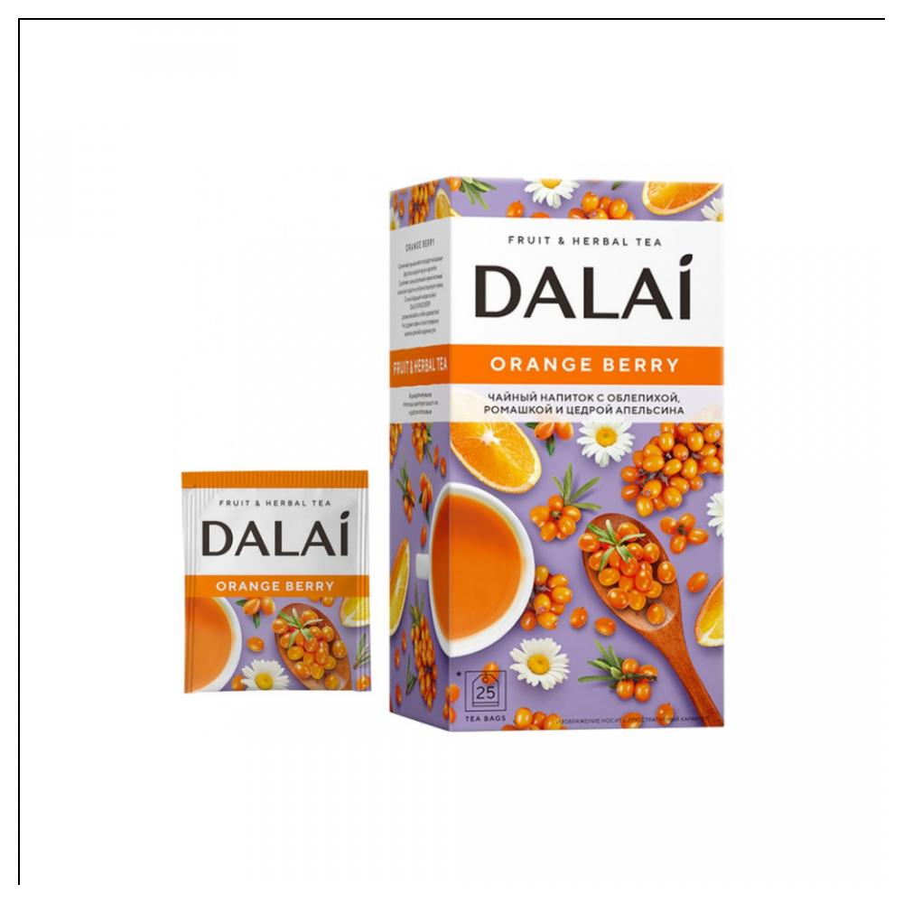 Чайный напиток "Dalai Orange Berry" — это яркое сочетание солнечного апельсина и сочных лесных ягод, заключённое в удобные пакетики по 1,2 г. Его аромат наполняет пространство свежестью и лёгкой сладостью, а вкус дарит бодрость и гармонию, превращая каждую чашку в маленький праздник. Упаковка из 25 пакетиков позволяет наслаждаться этим фруктово-ягодным букетом каждый день, создавая атмосферу тепла и уюта. Состав: ромашка, яблоко, облепиха, цедра апельсина, краситель натуральный бета-каротин, ароматизаторы "облепиха" и "апельсин". Условия и сроки хранения: Хранить при относительной влажности не более 70 %, в чистом, хорошо вентилируемом, без посторонних запахов местах. Условия хранения и срок годности указаны на упаковке. Срок годности — 2 года.