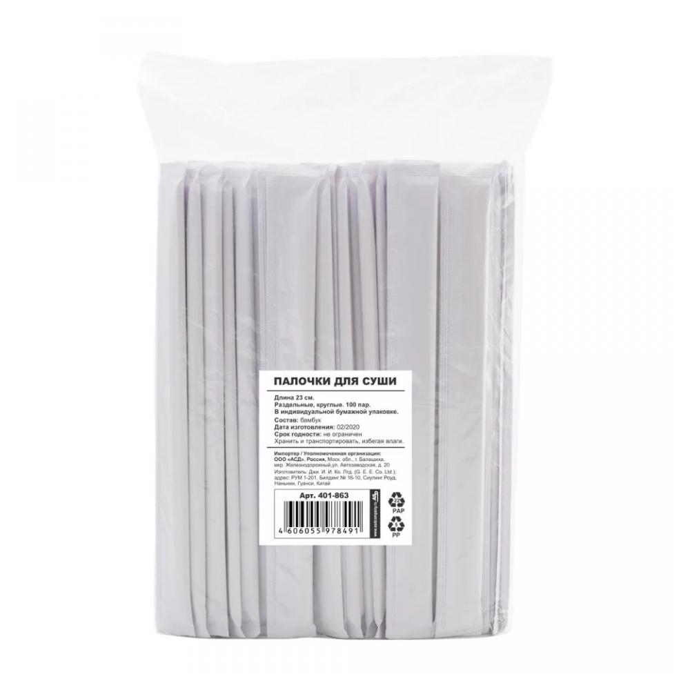Палочки для еды 23 см в индивид. упаковке, бамбук, 100 шт/упак