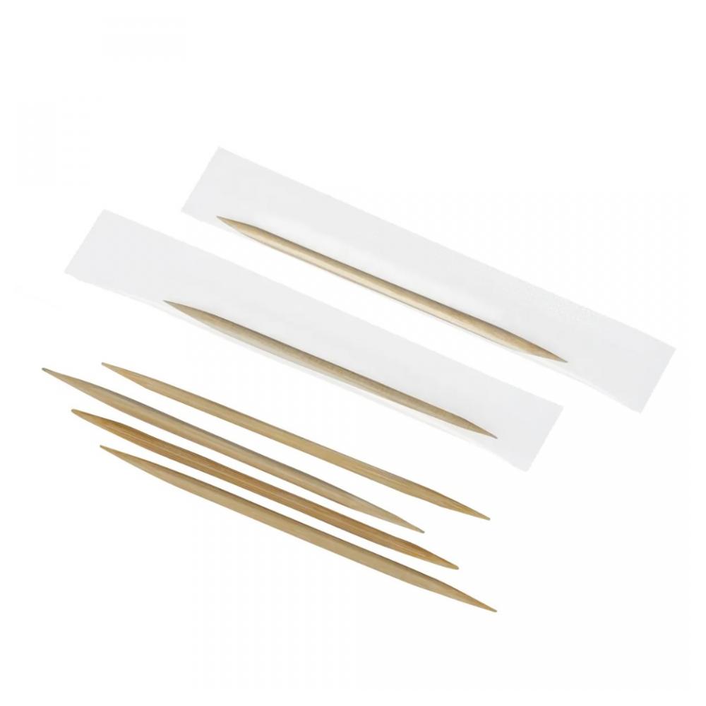 Бамбуковые зубочистки предназначены для поддержания гигиены полости рта после приема пищи. Изготовлены из высококачественного бамбука и имеют ряд преимуществ по сравнению с деревянными: более гибкие и прочные, не слоятся и не ломаются. Кроме основного предназначения, зубочистки можно использовать для скрепления канапе, рулетов и подобных им блюд. Преимущества: Зубочистки имеют высокую прочность. Не имеют зазубрин, хорошо заострены на концах. Не имеют запаха. Яркая упаковка и фирменный дизайн. Характеристики: Состав: бамбук. Тип упаковки: упаковка из картона. Индивидуальная упаковка: упаковка из полипропилена. Длина: 65мм. Условия хранения: Хранить при температуре от -40°С до +45°С в крытых сухих помещениях, на расстоянии не менее 1 м от нагревательных приборов. Срок годности не ограничен при соблюдении условий хранения.
