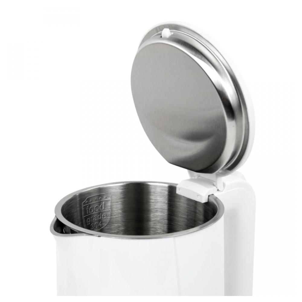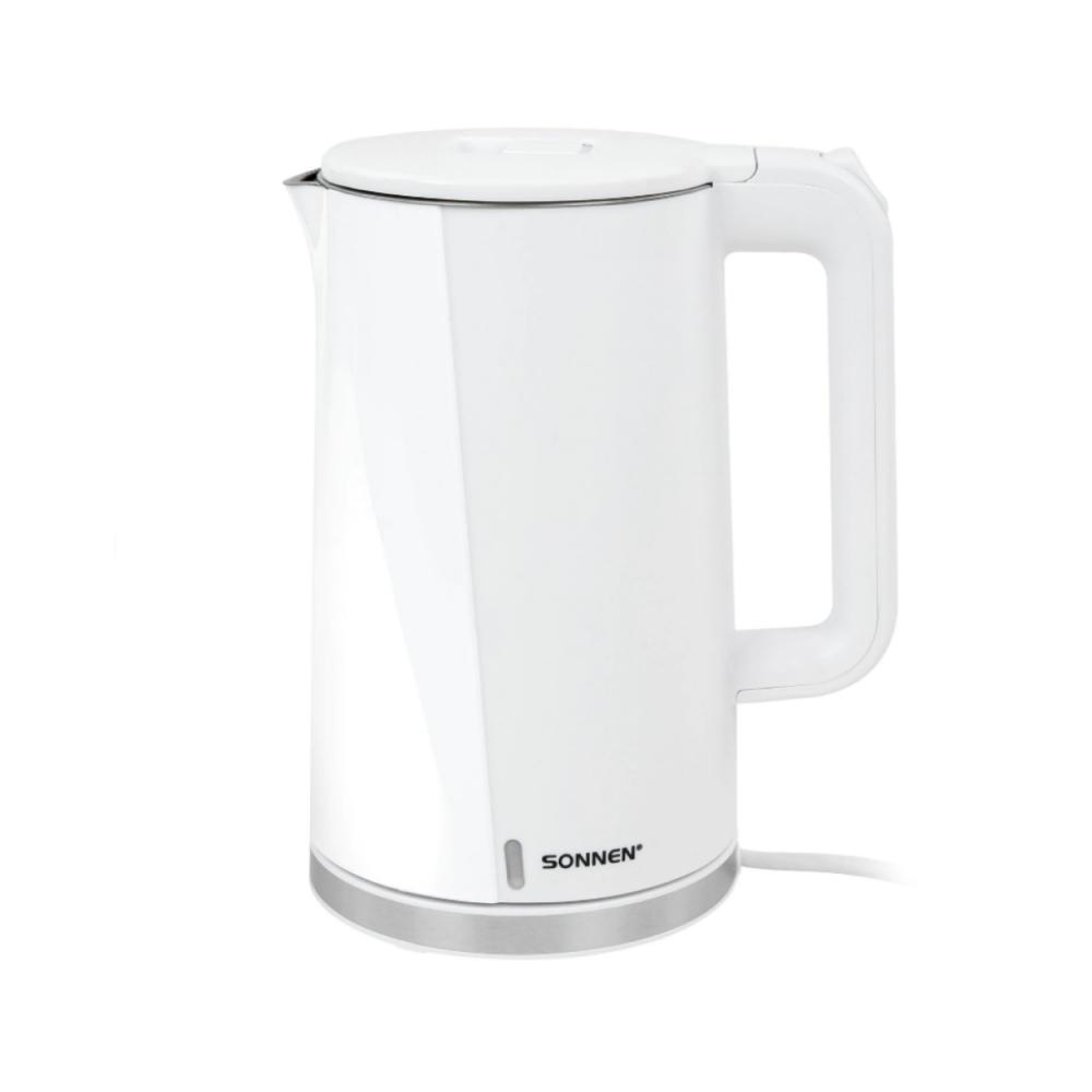 Чайник SONNEN KT-8718W обладает термооболочкой, которая не дает нагреться внешнему слою корпуса – можно не бояться ожогов, когда вода в чайнике горячая. Это особенно важно, если в семье есть маленькие дети. Мощность прибора составляет 2200 Вт, что позволит воде закипеть за считанные минуты. Объема 1,7 л хватит на большую компанию или на несколько нагреваний для одного человека в течение дня. На крышке чайника находится кнопка открывания, что делает его удобным в эксплуатации. Чайник имеет адиабатный корпус: внутренняя колба сделана из нержавеющей стали, внешнее покрытие – из термостойкого пластика. Благодаря такому корпусу чайник дольше сохраняет тепло. Чайник безопасен при использовании, так как имеет автоотключение при недостаточном количестве воды и защиту от перегрева. С чайником SONNEN KT-8718W вы всегда сможете насладиться приятными моментами в компании семьи и друзей за чашечкой чая! Характеристики: Вид нагревательного элемента: закрытый Автоотключение при закипании: да Серия: KT Отключение при отсутствии воды: да Индикатор включения: да Вращение на 360°: да Длина шнура: 0.75 м Цвет корпуса: белый Ширина: 215 мм Высота: 252 мм Глубина: 155 мм Вес (без упаковки): 1.1 кг Гарантия - 12 месяцев.