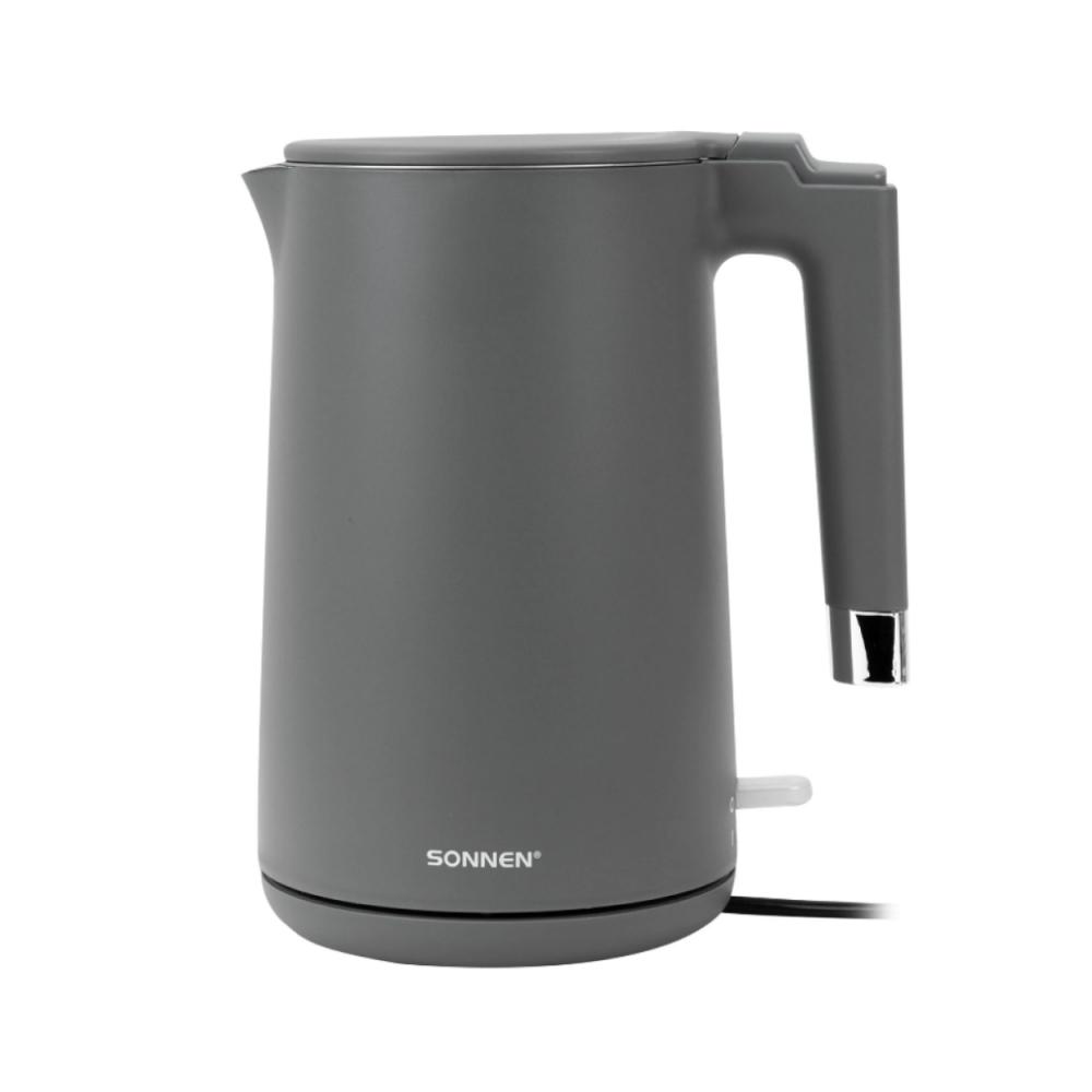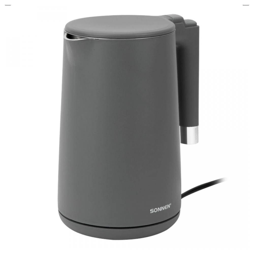 Чайник с двойными стенками SONNEN KT-8719G – идеальный выбор для тех, кто ценит комфорт, безопасность и безупречный дизайн Электрический чайник SONNEN KT-8719G имеет двойные стенки: внутренняя колба сделана из нержавеющей стали, внешнее покрытие – из термостойкого пластика. Благодаря такой конструкции внешняя поверхность чайника остаётся холодной, что исключает риск получения ожогов. Вода в таком чайнике остывает гораздо медленнее, сохраняя оптимальную температуру для заваривания любимых напитков. Данная модель идеально подходит для использования в домашних условиях и офисах, где важна скорость и удобство приготовления горячих напитков. Мощность прибора составляет 2200 Вт, что позволит воде закипеть за считаные минуты. Объема 1,5 л хватит на большую компанию или на несколько нагреваний для одного человека в течение дня. Благодаря стильному дизайну и компактным размерам этот чайник станет отличным дополнением к любой кухне. Чайник безопасен при использовании, так как имеет автоотключение при недостаточном количестве воды и защиту от перегрева. Характеристики: Вид нагревательного элемента: закрытый Автоотключение при закипании: да Серия: KT-8719 Отключение при отсутствии воды: да Индикатор включения: да Вращение на 360°: да Фильтр от накипи: да Длина шнура: 0.75 м Цвет корпуса: графитовый Ширина: 155 мм Высота: 252 мм Глубина: 215 мм Вес (без упаковки): 1 кг Гарантия - 12 месяцев.