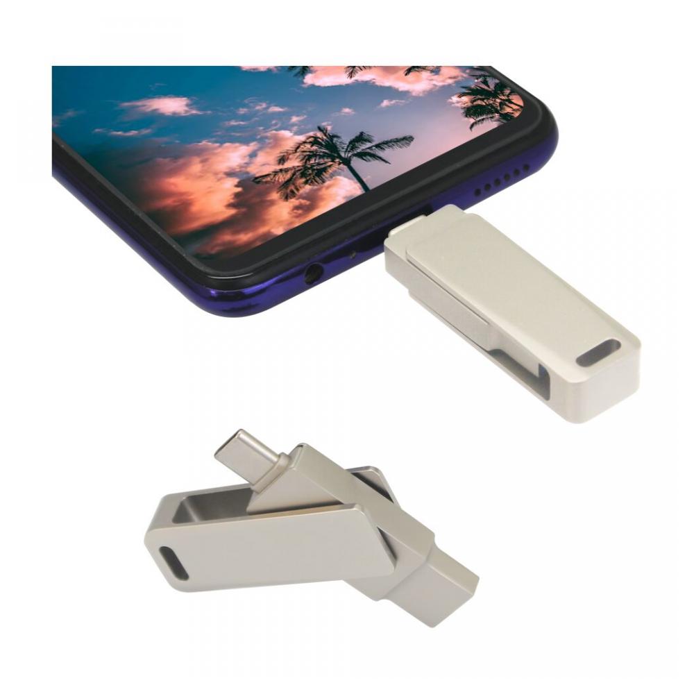 Высокоскоростной накопитель USB 3.0 "СК-046" с двойным интерфейсом — классическим Type-A и современным Type-C, благодаря последнему легко подключается к вашему смартфону, планшету, ноутбуку или другому совместимому устройству. Надежный металлический корпус имеет отверстие, облегчающим прикрепление носителя данных к ключам, рекламным шнуркам или брелокам. Совместимость с ОС Windows 7, 8, 10, 11 MAC OS, Linux. Гарантия - 1 месяц.