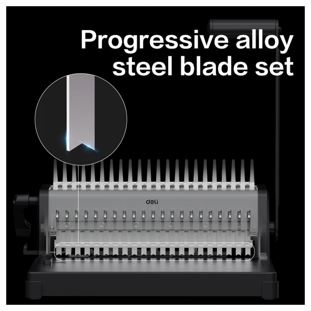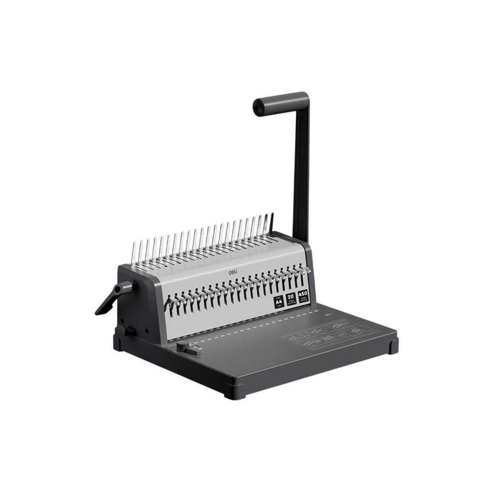 Перфобиндер Deli Plastic Binder T313 — надежное устройство для профессиональной брошюровки документов на пластиковую пружину (гребенку). Модель выполнена в классическом стандарте 4:1 (21 отверстие) с шагом 14,3 мм и размером отверстий 3х8 мм, что гарантирует идеальную совместимость с любыми гребенками и аккуратное перелистывание страниц. Высокая производительность достигается за счет пробивной способности в 20 листов за один проход (бумага 80 г/м²), а максимальная толщина готового документа может достигать 450 листов. Прочный корпус и надежный стальной механизм рассчитаны на интенсивное использование, делая эту модель идеальным выбором для офиса, копицентра или учебных заведений. Deli T313 — это простое и эффективное решение для создания отчетов, курсовых работ, каталогов и презентаций.