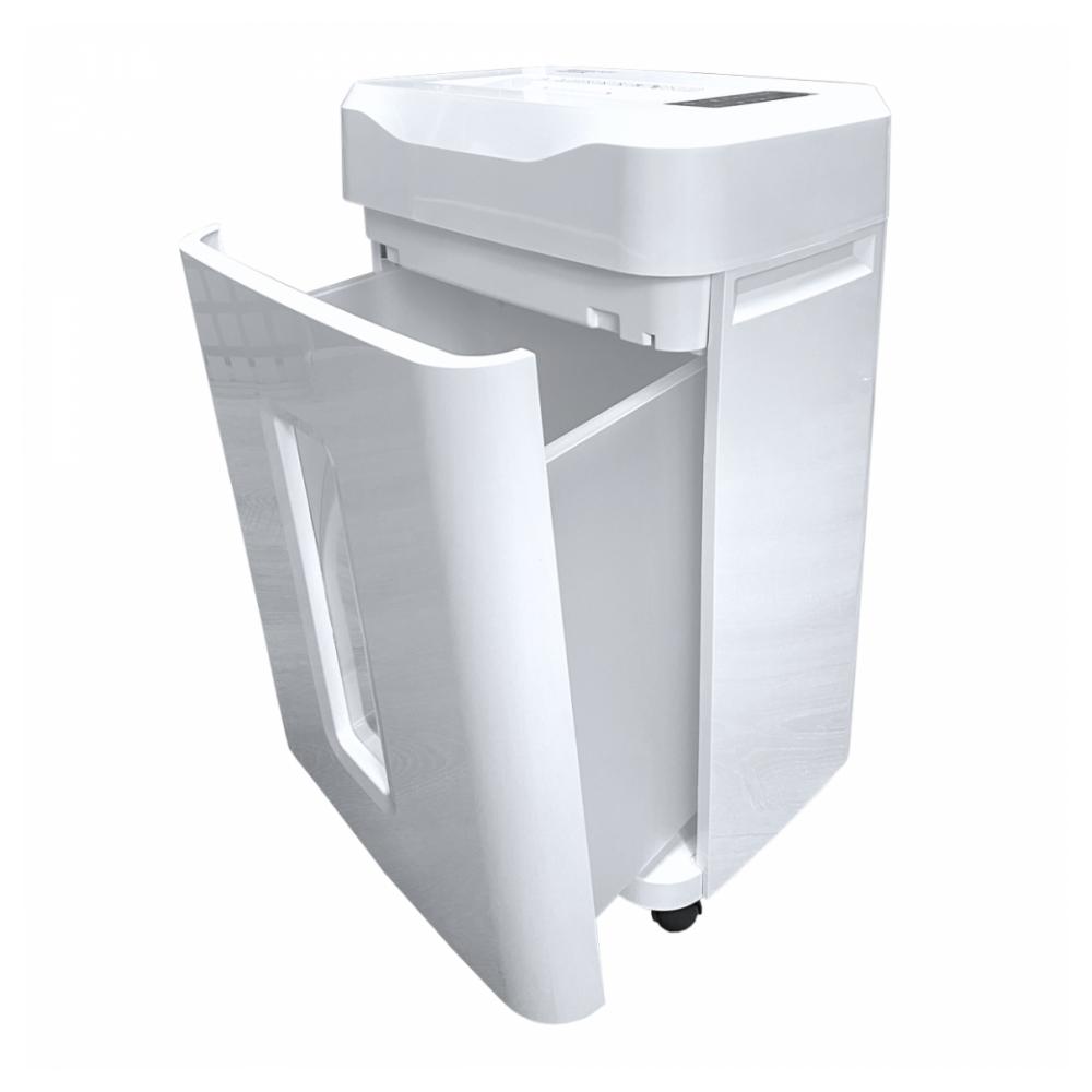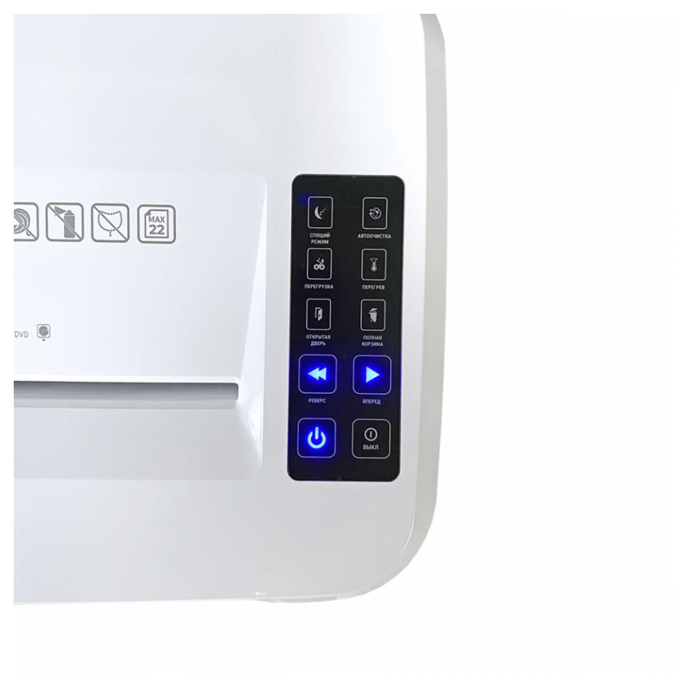 Функциональный уничтожитель для офисного использования, способный уничтожать большое количество листов. Устройство оборудовано индикаторами включения, выдвинутой корзины, перегрузки, перегрева и переполненной корзины. Аппарат также включает новые функции, такие как энергосбережение и автоочистка. Корзина устройства оснащена удобной ручкой и колесиками для удобства перемещения. Гарантийный срок – 12 месяцев.